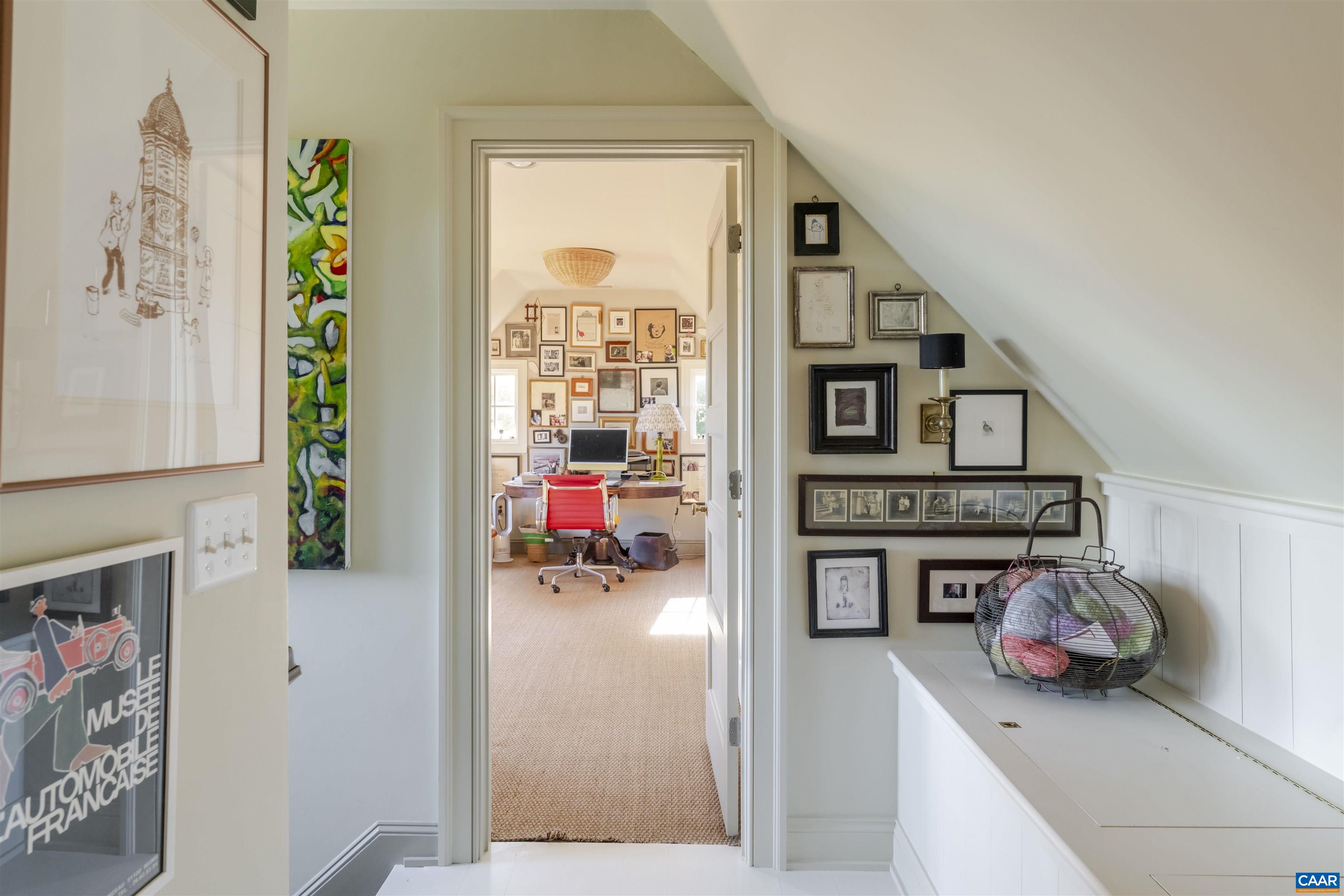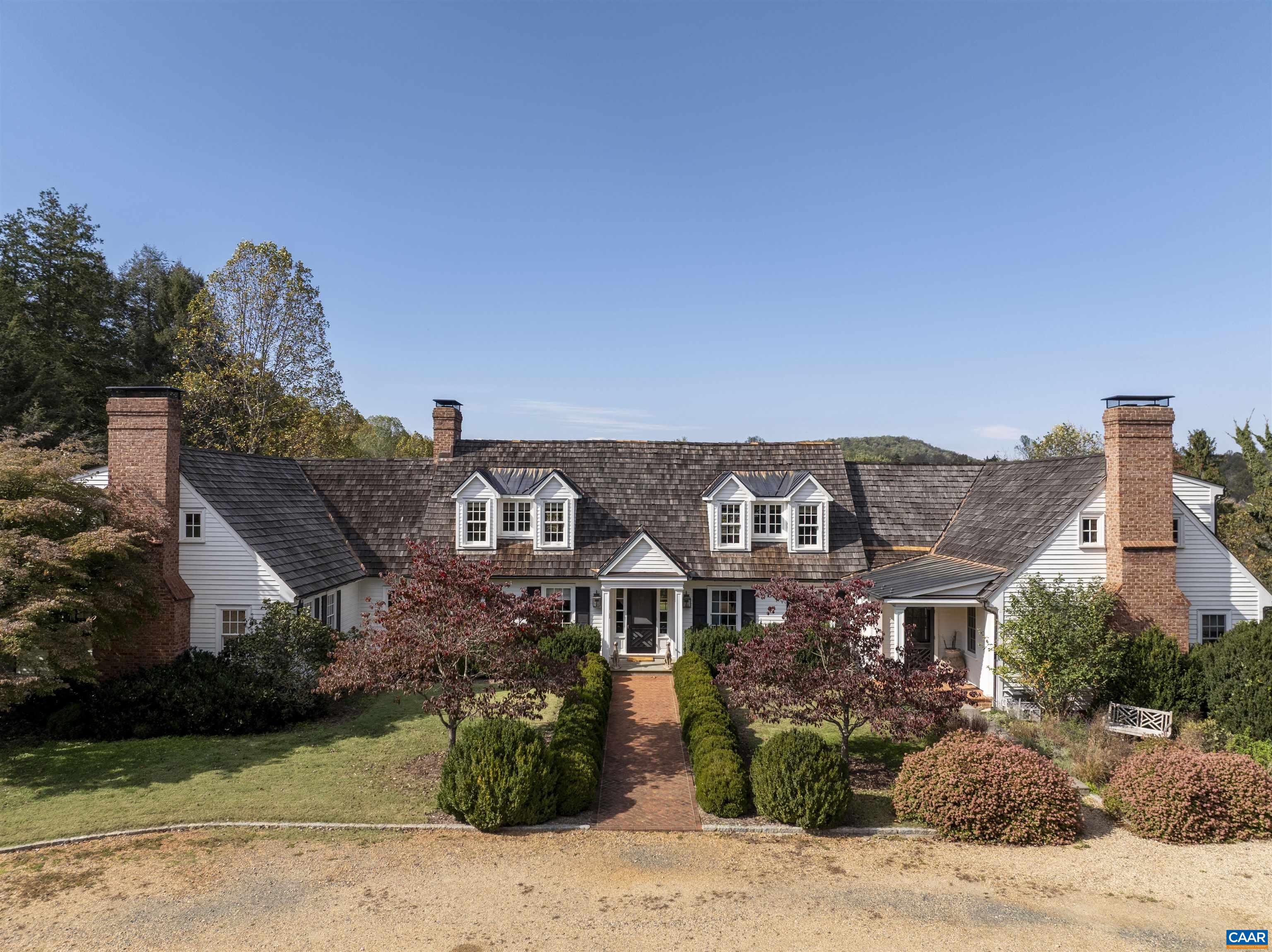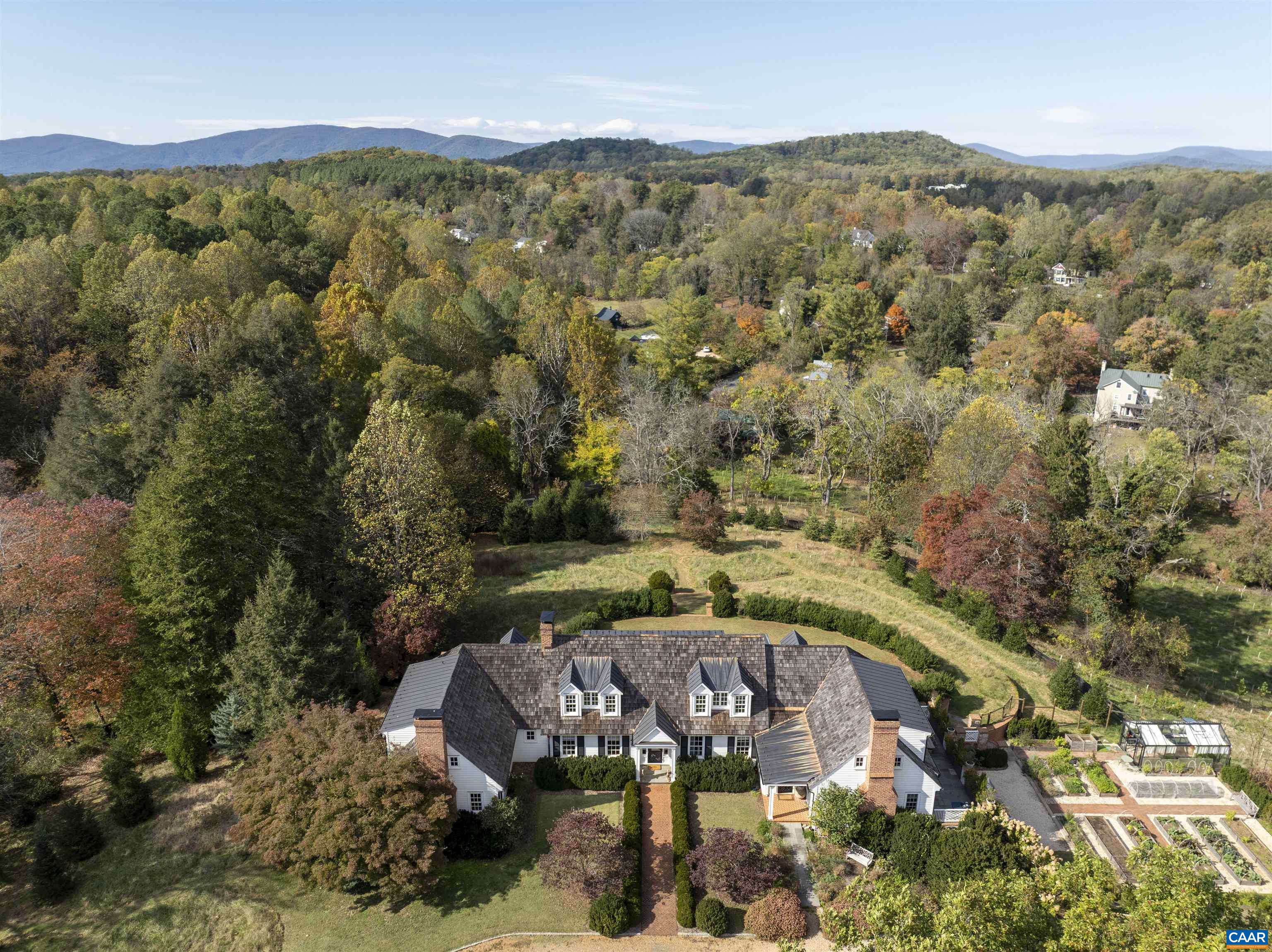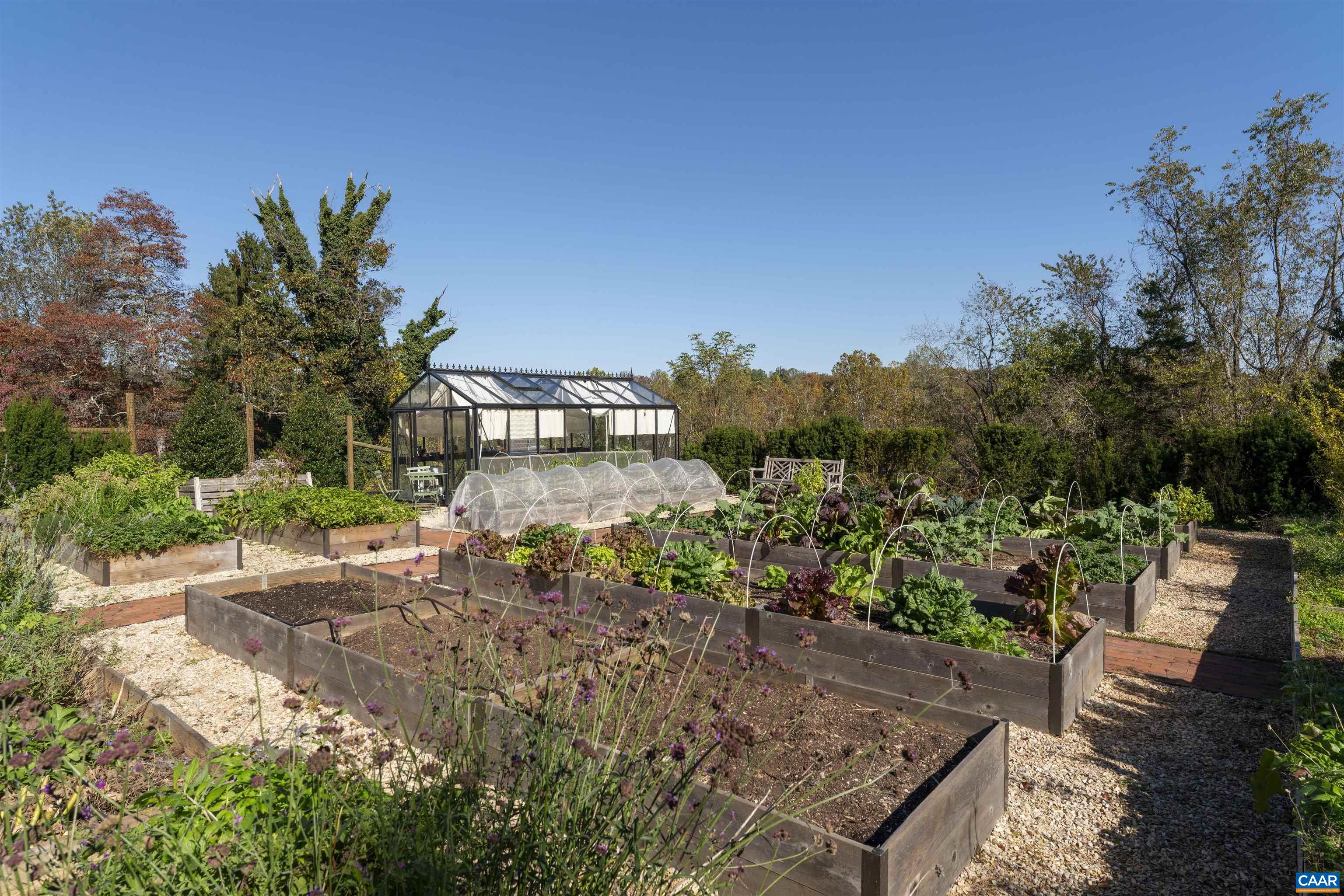 Fairhill - A remarkable property of significant architectural quality offering a timeless blend of English country design & modern livability on 6.67 private acres, walkable to village of Ivy, and less than 5 miles west of Charlottesville. The main residence (just over 7,000 fin.sq.ft) features exquisite living spaces & exceptional craftsmanship throughout, including a stunning library with custom bookshelves & wood-burning fireplace. The fully outfitted chef’s kitchen with marble counters, stainless appliances & two walk-in pantries invites cooking, entertaining & true garden-to-table living. French doors & multiple terraces create seamless indoor-outdoor flow with views of terraced lawns & Little Ivy Creek. A professionally designed culinary garden with greenhouse & irrigated raised beds brings a purposeful connection between the kitchen & the landscape. The main-level primary suite enjoys its own private patio connecting to the grounds. Four additional bedrooms offer plenty of space for family. There is an impressive 2-bedroom guest cottage with full kitchen and wood-burning fireplace that provides luxurious accommodations for guests or extended stays. A rare opportunity in one of Albemarle County’s most desirable settings.