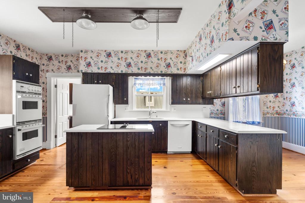 Welcome to this 1905 Colonial farmhouse set on 14.5 picturesque acres in the heart of Marshall's horse and farm country. This special property blends historic charm with practical updates, offering over 3,600 square feet of living space, 4 bedrooms, and 3.5 baths. Inside, the home showcases original pine floors, intricate millwork, and an ornate oak staircase. The rooms are impressively spacious for the era, from the inviting living room with a wood-burning fireplace and custom built-ins, to the formal dining room that radiates warmth and history. The kitchen, thoughtfully remodeled in 1978, still retains a nostalgic farmhouse feel with its Viking double wall oven, solid-surface countertops, wood cabinetry, and whimsical seed-packet wallpaper. A side stairway to an upstairs bedroom is a charming reminder of the home's early roots. Upstairs, you'll find generously sized bedrooms, including a primary suite with vaulted ceiling, wood stove, two walk-in closets, and a private study with built-ins and a balcony overlooking Cobbler Mountain. Outdoor living is just as appealing, with sweeping views from every angle. Unwind on the wide covered porches with flagstone floors, or gather with family and friends for lawn games in the spacious
