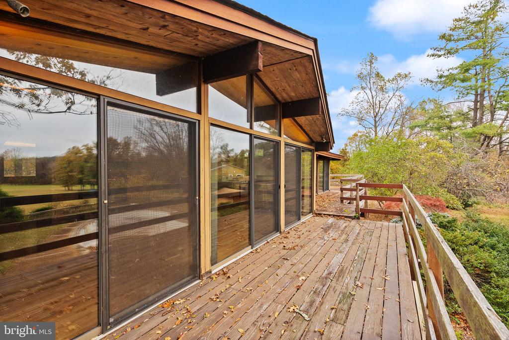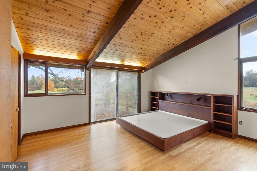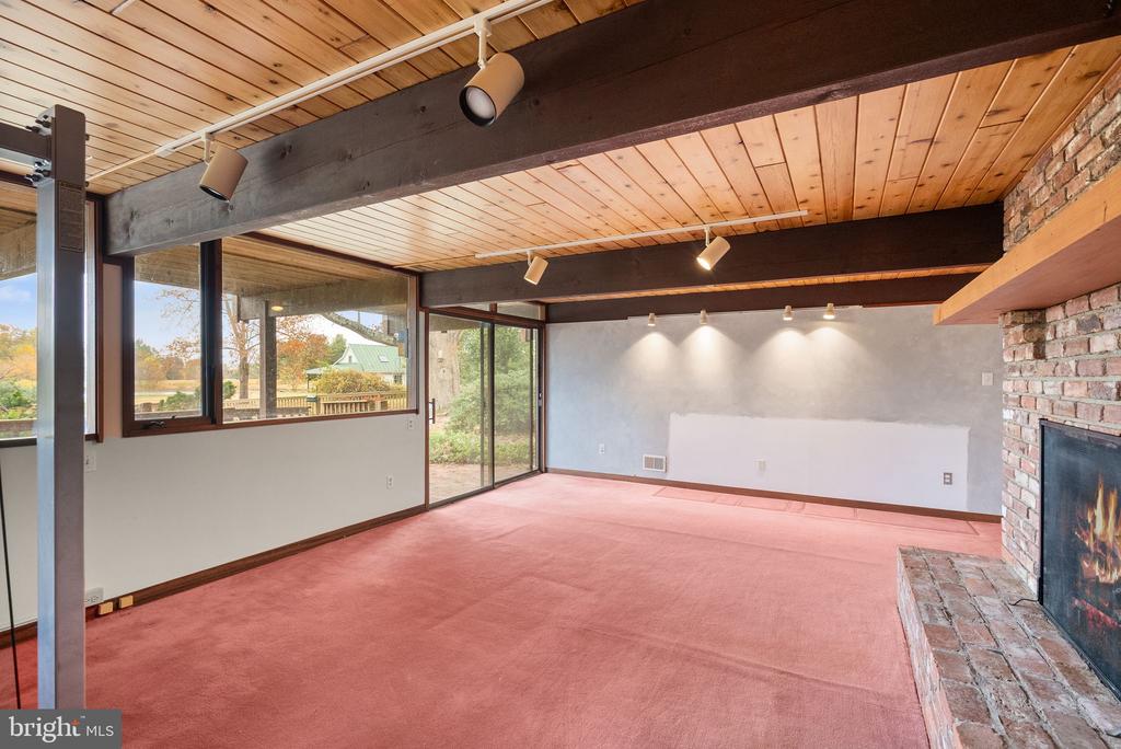 A rare opportunity to own a custom mid-century modern home on a stunning private lot in Warrenton! This architecturally distinctive residence features soaring vaulted wood-beamed ceilings, expansive walls of glass, and open-concept living spaces designed to bring the outdoors in. The main level showcases a dramatic great room with panoramic views, a floor-to-ceiling brick fireplace, and direct access to an oversized deck ”” perfect for entertaining or enjoying peaceful country sunsets. The kitchen offers an open layout with natural wood cabinetry and center island, ready for your modern design touches. The lower level provides walk-out access and endless possibilities for recreation, home office, or guest space. The property's exterior is equally impressive, with mature trees, a fenced yard, and an in-ground pool awaiting restoration ”” offering the potential to create a true backyard retreat. The property also includes an existing exercise building, designed to match the main home, complete with a full bathroom ”” ideal for a private studio, guest house, or future accessory dwelling unit (ADU). Nestled on a serene parcel with rolling countryside views, this home combines privacy, character, and space ”” all within minutes of down