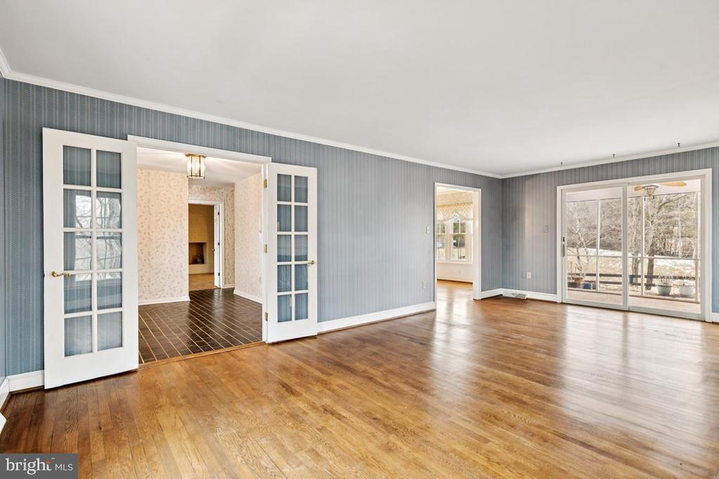 Waiting for you!! This stunning home is warm and welcoming with many features to delight the eye. The brick archway into the renovated kitchen gives way to appreciation for the beautiful cherry wood cabinets and stainless steel appliances, with the joy of cooking in this space enhanced by the well placed lighting features in both recessed lighting and pendant lamps. The custom/handmade features draw your attention to the range hood - a feature of the kitchen. The oven/range includes a very useful surface warming feature at the back. The expansive office space just off the kitchen is well placed for daily living or office work from home. The family room has a fireplace with stunning cherry frame and mantle, a built-in corner wet bar, and shelving. The dining room is graced with chair rail, wainscotting and crown molding. The spacious living room boasts another beautiful fireplace, and sliding doors to the screened-in porch and the patio overlooking the back pasture and paddocks - perfect for family gathering and entertaining! Going to the upper level of the home; the stairs, hallway, primary bedroom and dressing/sitting area will be freshly carpeted. The primary bedroom and next door 2nd bedroom have Fr. doors opening to the covere
