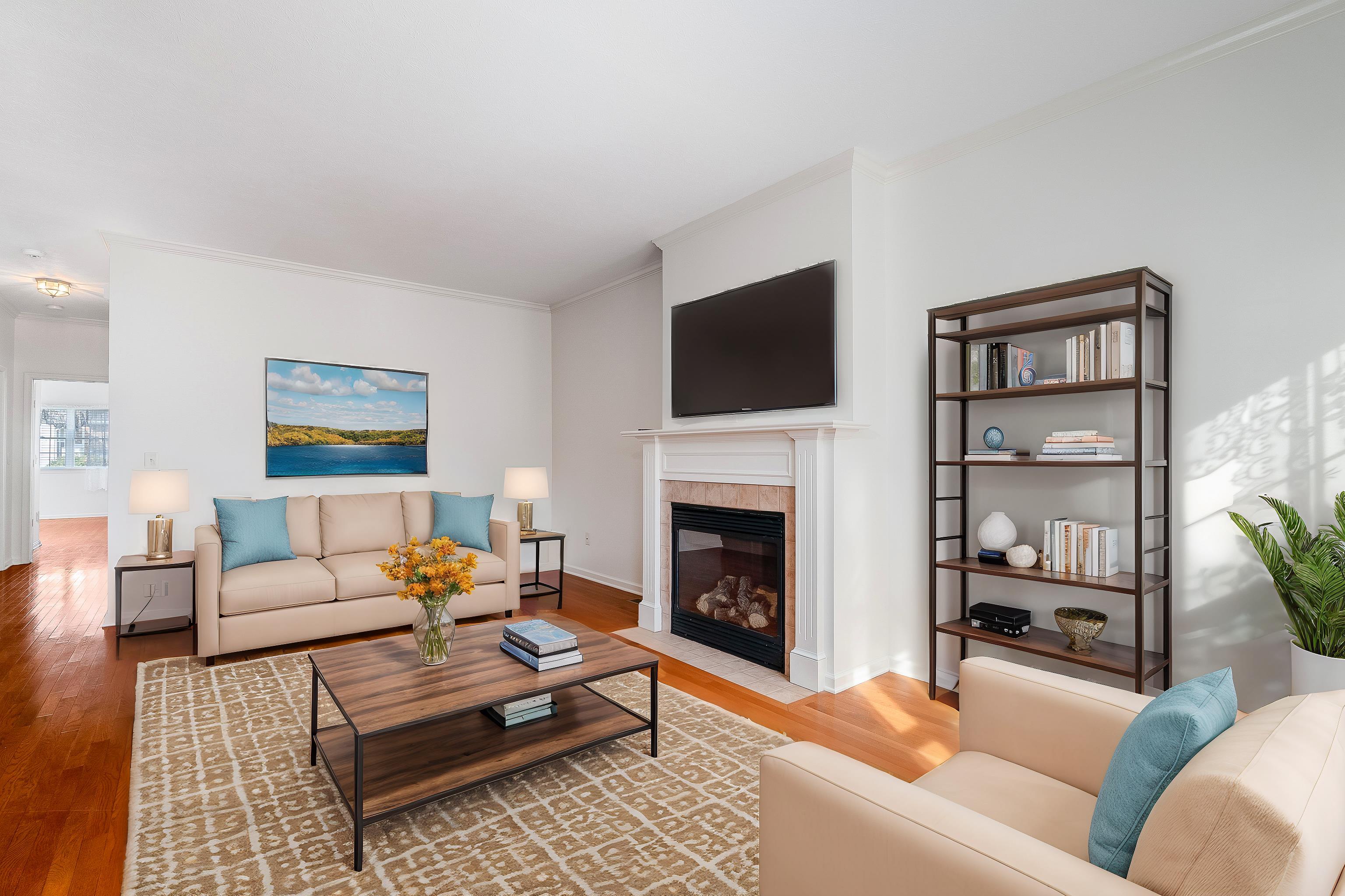 This well-maintained, duplex offers one-level living in an excellent location just across the street from Shenvalee Golf Course. Freshly painted and featuring hardwood floors in the living room, hallway, and den, this home boasts a cozy gas fireplace and 9-foot ceilings. The spacious primary suite includes an $8K zero-entry shower upgrade with grab bars, a double vanity, and a walk in closet. The den can serve as a home office or potential third bedroom. Additional highlights include a maintenance-free exterior, a professionally landscaped yard, and a two-car garage. The gas furnace, gas water heater, and central AC have been routinely serviced. Situated on a quiet cul-de-sac with mountain views, this home has all you've been waiting for! Schedule your showing today!