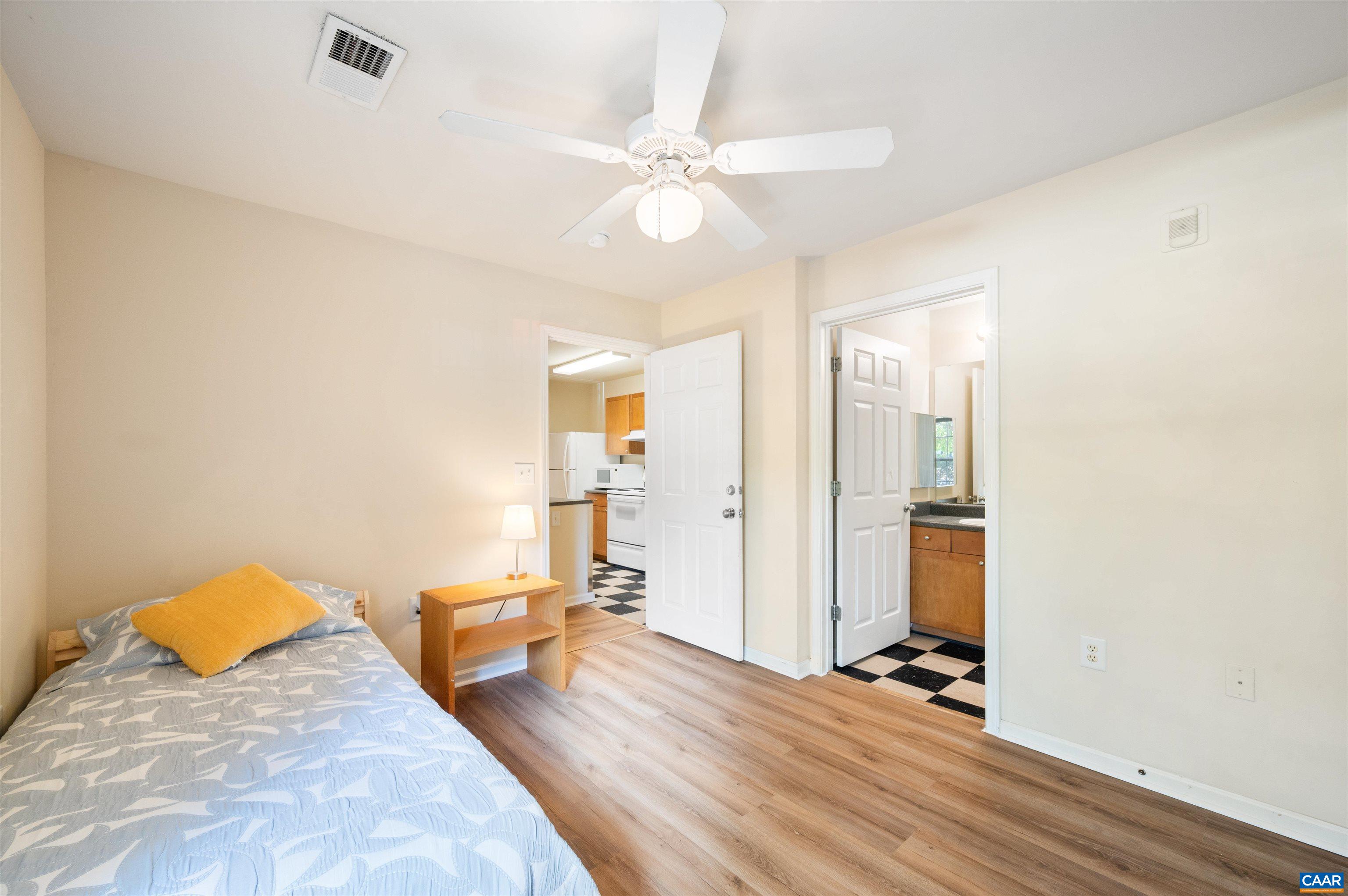 VACANT & READY FOR OCCUPANCY! TWO BEDROOM GROUND FLOOR CONDO WITH NO STEPS! Welcome to this 2-bedroom, 2-bathroom condo located in the highly desirable Eagles Landing gated community in Charlottesville, VA. Just minutes from UVA, PVCC, and Downtown, this home offers both comfort and convenience in a vibrant, amenity-rich neighborhood. Features include: two generously sized bedrooms with en-suite bathrooms, fully equipped kitchen with ample cabinet and counter space, in-unit laundry for added convenience. Community amenities: gated entry with on-site management for peace of mind, resort-style pool and clubhouse perfect for relaxation or entertaining, fully-equipped fitness center, volleyball, and basketball courts, on-site car wash station. Private shuttle service to UVA and PVCC—ideal for students or staff. Beautifully maintained grounds and plenty of parking. Whether you're a first-time homebuyer, investor, or looking for an ideal home close to the university, this condo offers unbeatable value and a fantastic lifestyle.