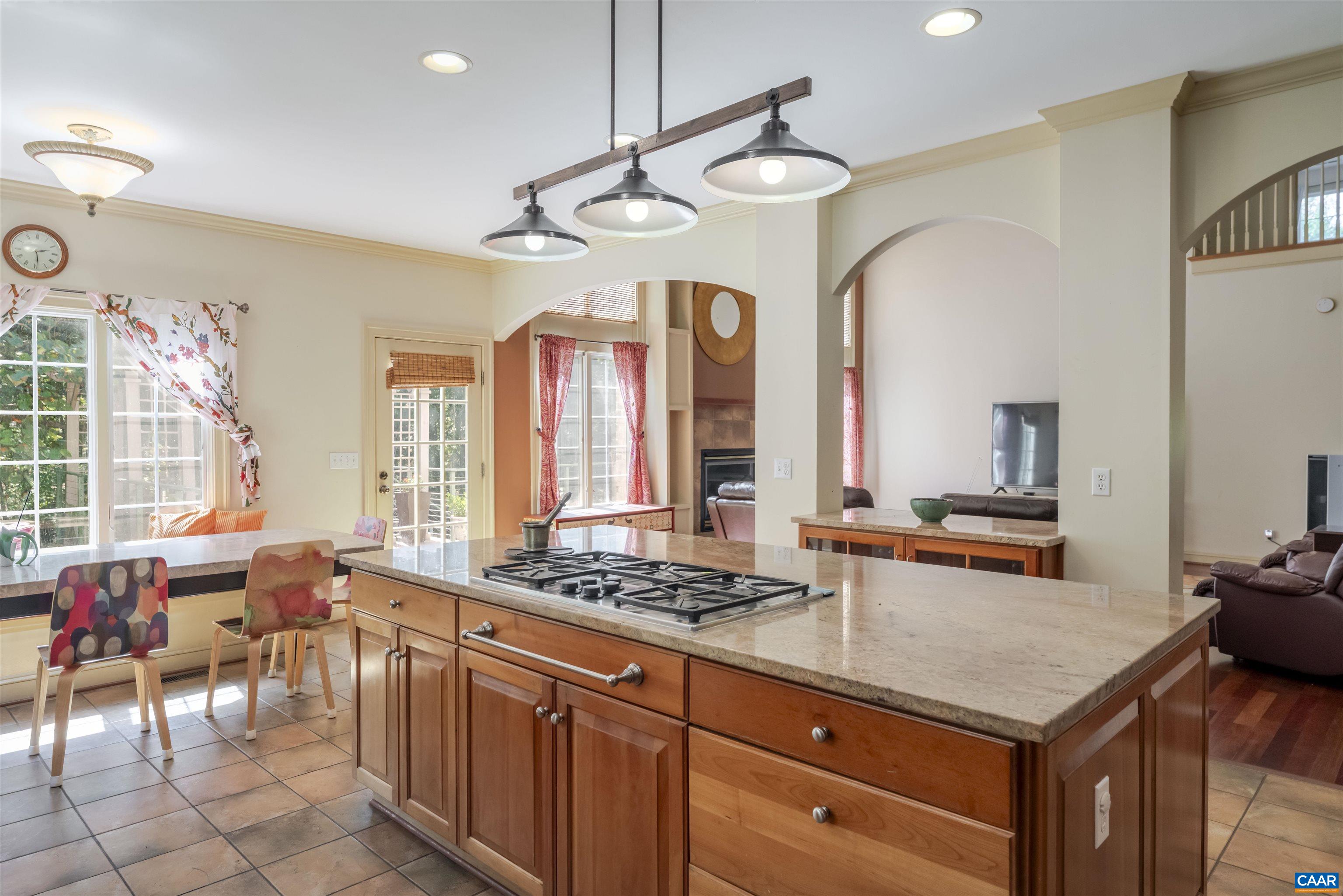 A spacious residence...Stunning inside and out...Dramatic great room, opens to the kitchen & breakfast room, which leads to large deck, overlooking beautiful lower terrace...extensive, extended living space...Bright living and dining rooms...First floor primary suite, features huge walk-in closet, separate vanities & a private side deck...A second bedroom w/a private bath, the laundry room, and powder room round out the first floor...Walking up the open staircase to the second floor, you find a open family room that overlooks the great room and leads to the 3 bedrooms on the second level... The terrace level includes a kitchenette, family room w/fireplace, full bath, a great exercise/ballet room...Gas line is attached to the fire pit & gas grill...Large 3 car garage...Top quality & attention to detail throughout! A fantastic neighborhood with pool, tennis courts, walking paths and a lovely pond and fountain...Idyllic is the right word for the lifestyle in Walnut Hills... This extensively landscaped 1.5 acres is set in a lovely neighborhood...Surprisingly close to Harris Teeter, Starbucks, Target and more...only 6 miles to Albemarle High School and town..