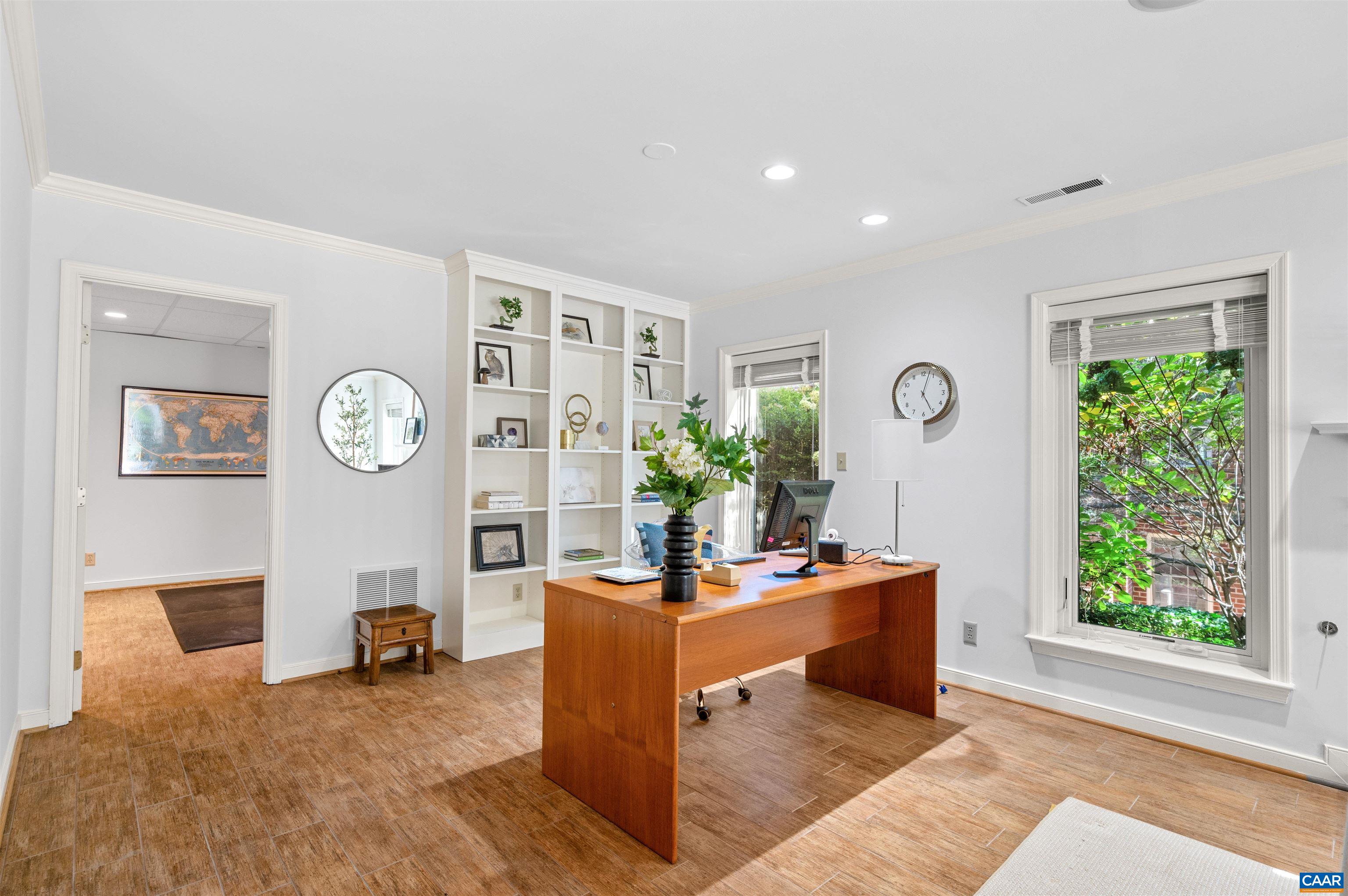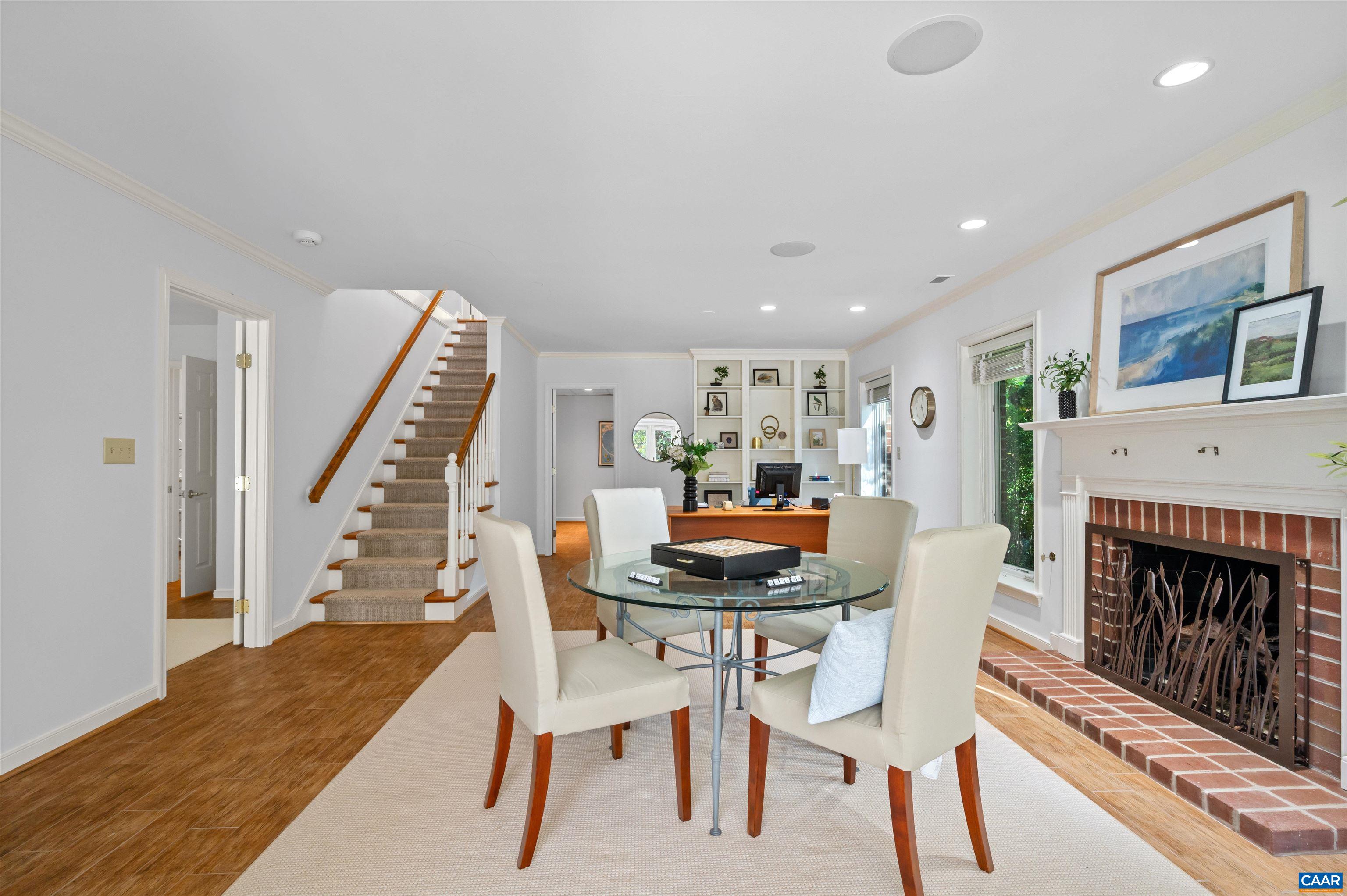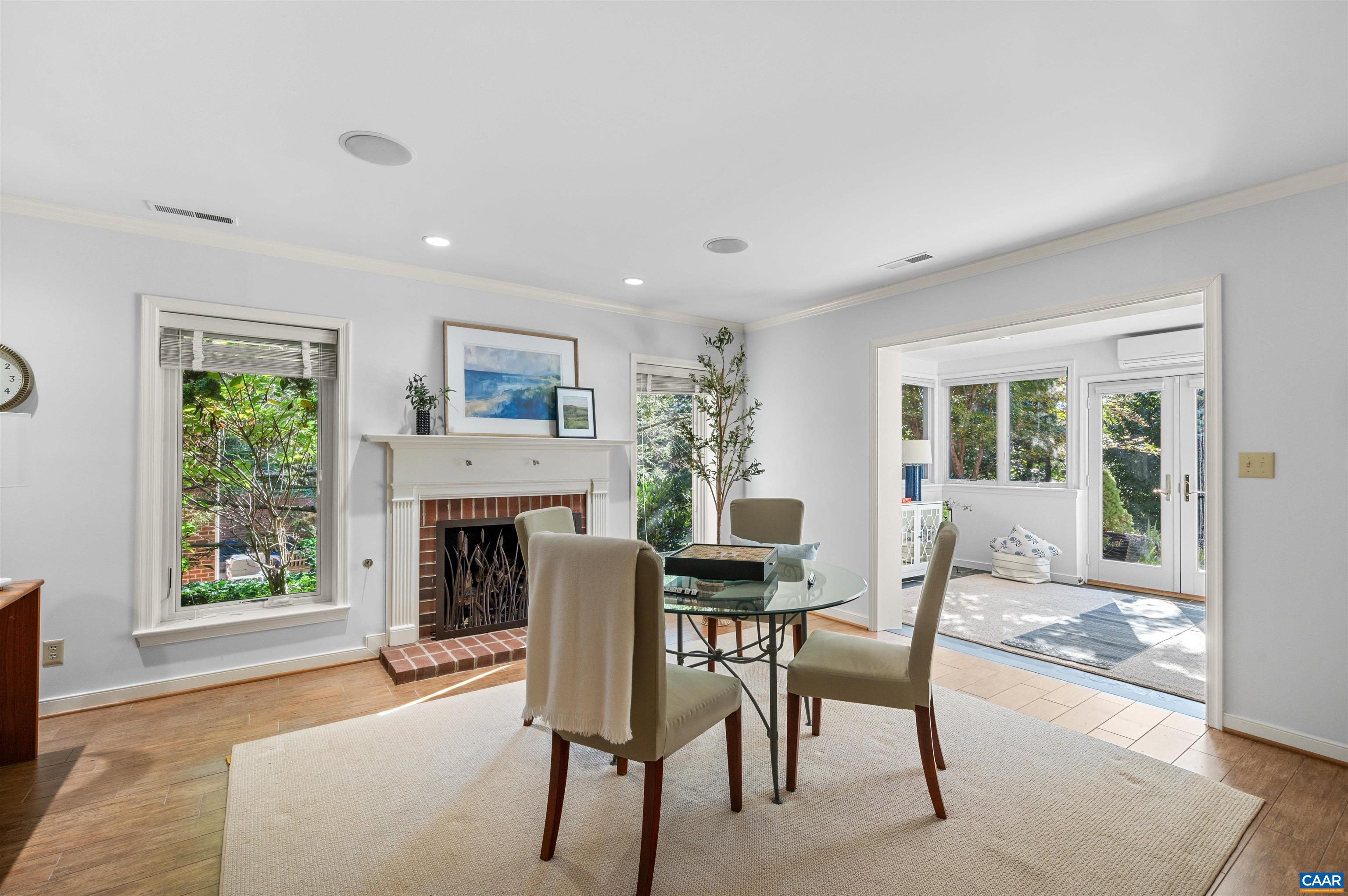 This two-bedroom home combines comfort and convenience in one of Charlottesville's most desirable communities. A bright bump-out sunroom opens to the beautifully manicured gardens, alongside a family room with fireplace, office, and guest suite. The main level offers a welcoming foyer, living room with fireplace and picture windows, dining space, spacious kitchen, and a primary suite with walk-in closet and full bath. Just steps from the Boar's Head Inn, Sports Club, Spa, Birdwood Golf Course, and wooded trails, this home makes everyday living easy. Second option location for washer/dryer in primary suite bathroom for stackable.
