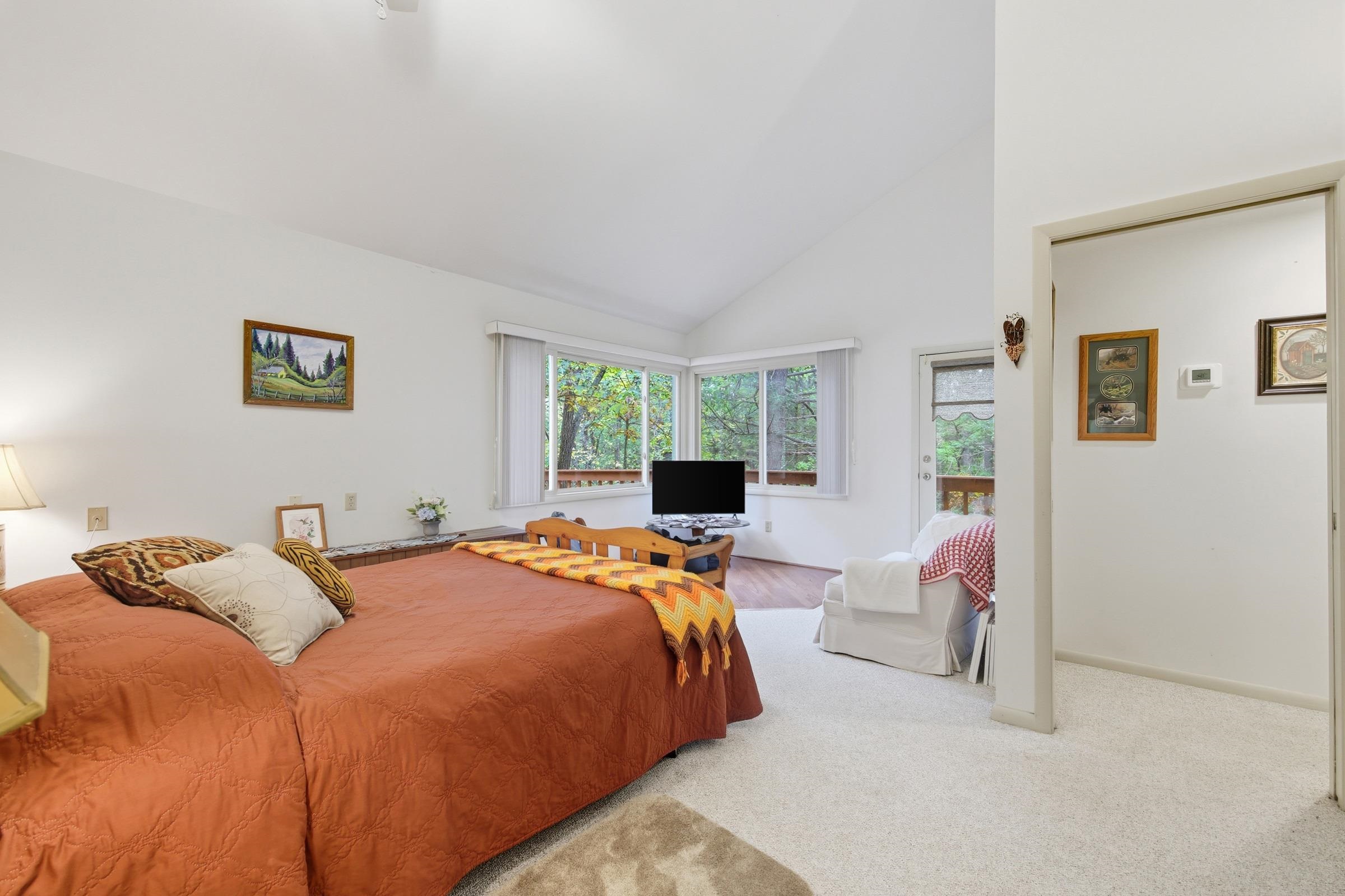 This beautiful contemporary cabin offers the perfect blend of comfort, style, & tranquility. Featuring 3 bedrooms & 2.5 baths, this home sits on 3 parcels totaling 1.168 acres, surrounded by mature trees. Enjoy outdoor living at its best with a large side deck & a covered front porch. Step inside to an open-concept main level showcasing a spacious living room with a double-sided gas fireplace which is open to the dining area & a well-appointed kitchen with ample cabinetry & barstool seating. Just off the kitchen is a convenient laundry room with storage. The primary suite on the main level is a true retreat, complete with the fireplace, plenty of windows to take in the wooded views, a walk-in closet, deck access, & a luxurious ensuite bath featuring a massage shower. The lower level offers a large family room or rec area, two additional bedrooms, a full bath, & two storage rooms for ample space. The basement is walkout level and leads directly to a spacious parking area with plenty of room for guests. This immaculate home has been well maintained, features a new HVAC system, & is truly move-in ready—whether you’re looking for a full-time residence, a weekend getaway, or a short-term rental opportunity.