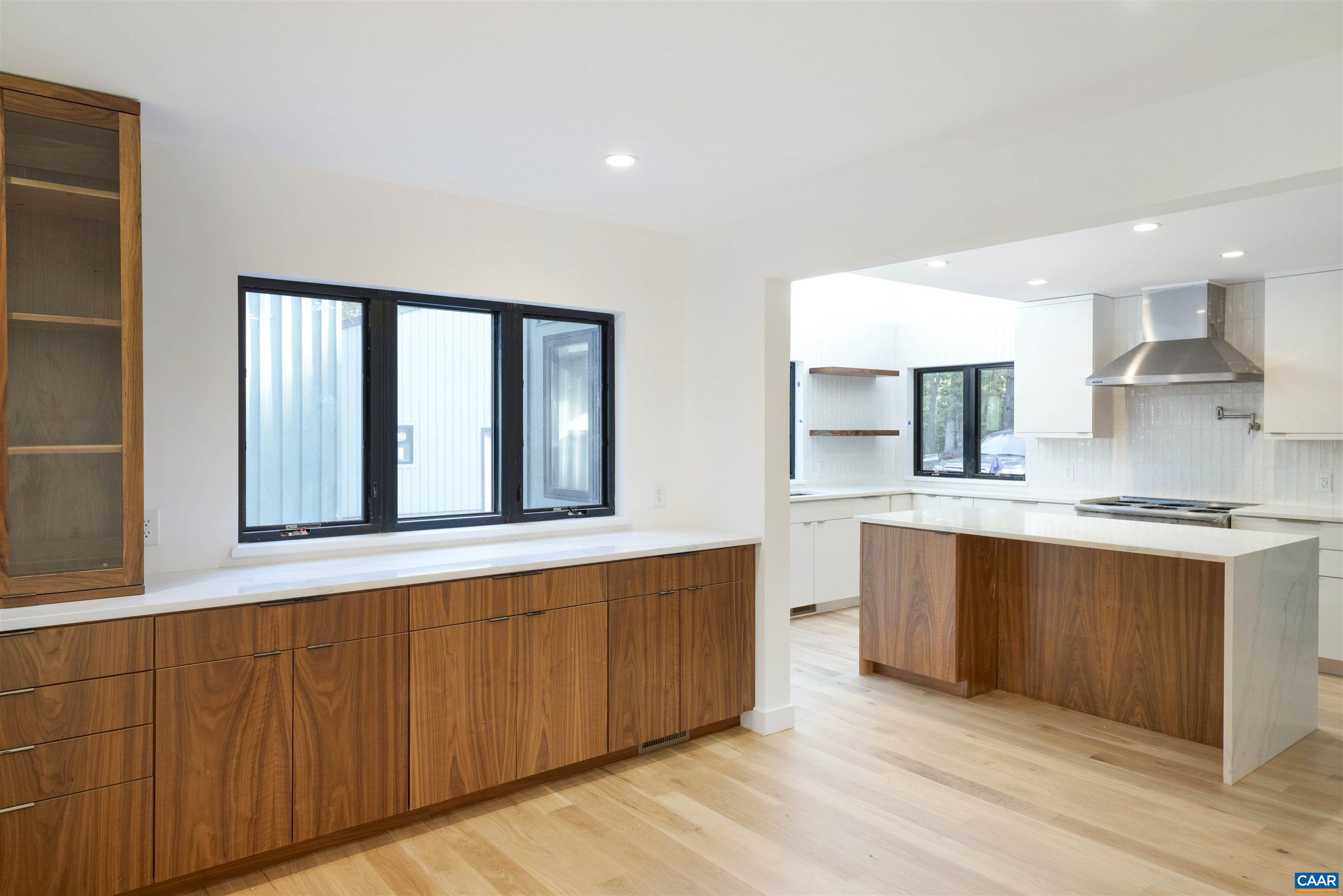 This property has undergone flawless upgrades, elevating a well-built architectural gem to a supreme level of style, comfort, and quality. Offering 5 bedrooms and soaring interior spaces, the home features two first-level primary suites, including a private guest suite. The second level includes three additional bedrooms and two baths (one en-suite), along with multiple flexible spaces ideal for creative pursuits, offices, or studios. Designed for seamless indoor-outdoor living, enjoy coffee, cocktails, or dining on four porches, including a large covered wraparound porch. The stunning new kitchen showcases premium custom cabinetry and Viking appliances, flowing effortlessly into the open great room, cozy family room, wet bar, and outdoor entertaining areas. The great room’s striking fireplace anchors the space, complemented by a second fireplace in the inviting family room. The primary suite, great room, and family room all open directly to the covered porch. A separate yet connected guest primary suite linked via a glass walkway offers exceptional privacy and includes a second-floor office or workout space. Located on 11+ acres off Garth Road surrounded by conservation land, gives it rare privacy and blue ridge view opportunity.