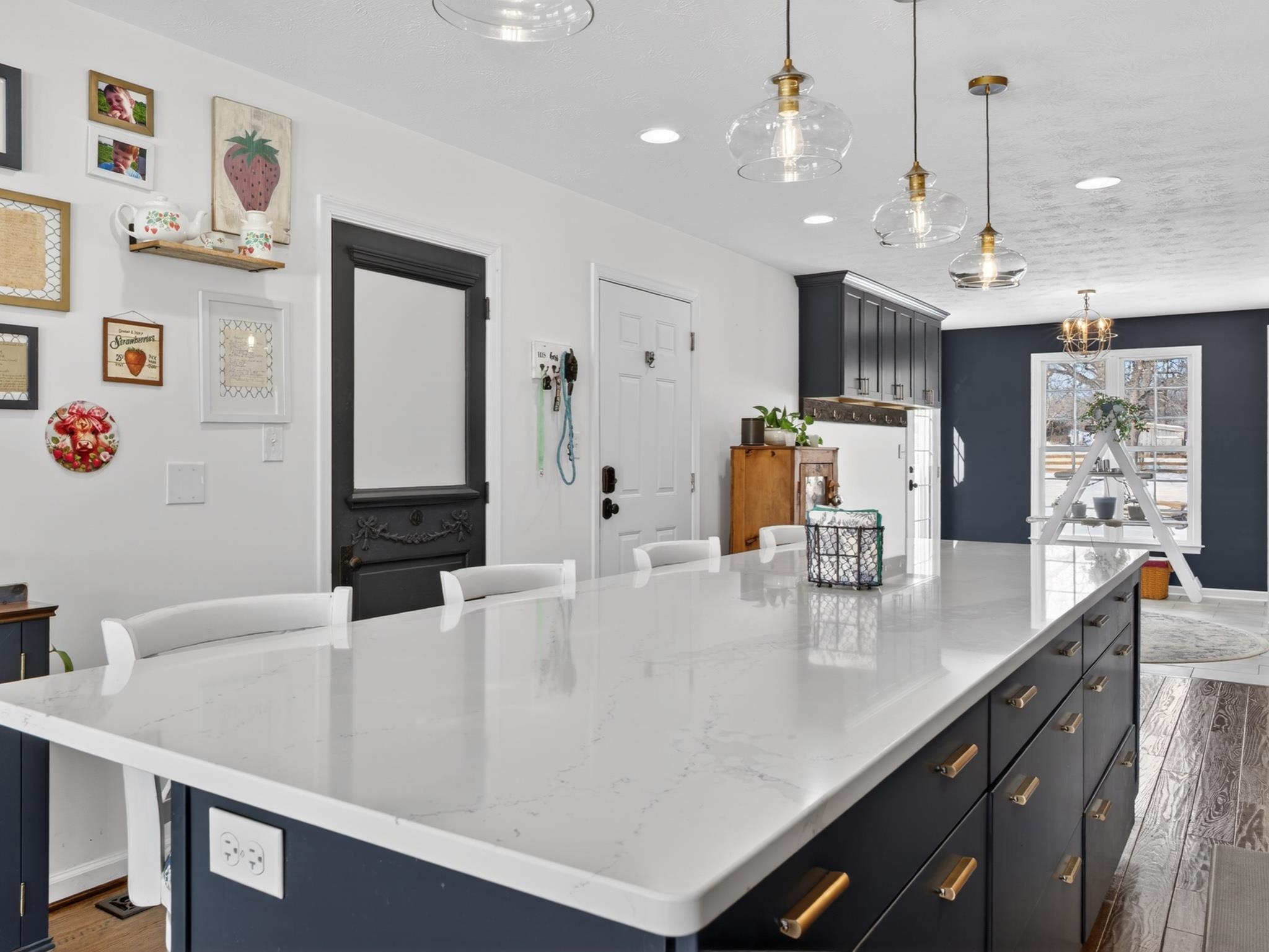 1st Floor Master Bedroom: PrimaryDownstairs, BreakfastBar, EatInKitchen, HighCeilings, RecessedLighting, VaultedCeilings