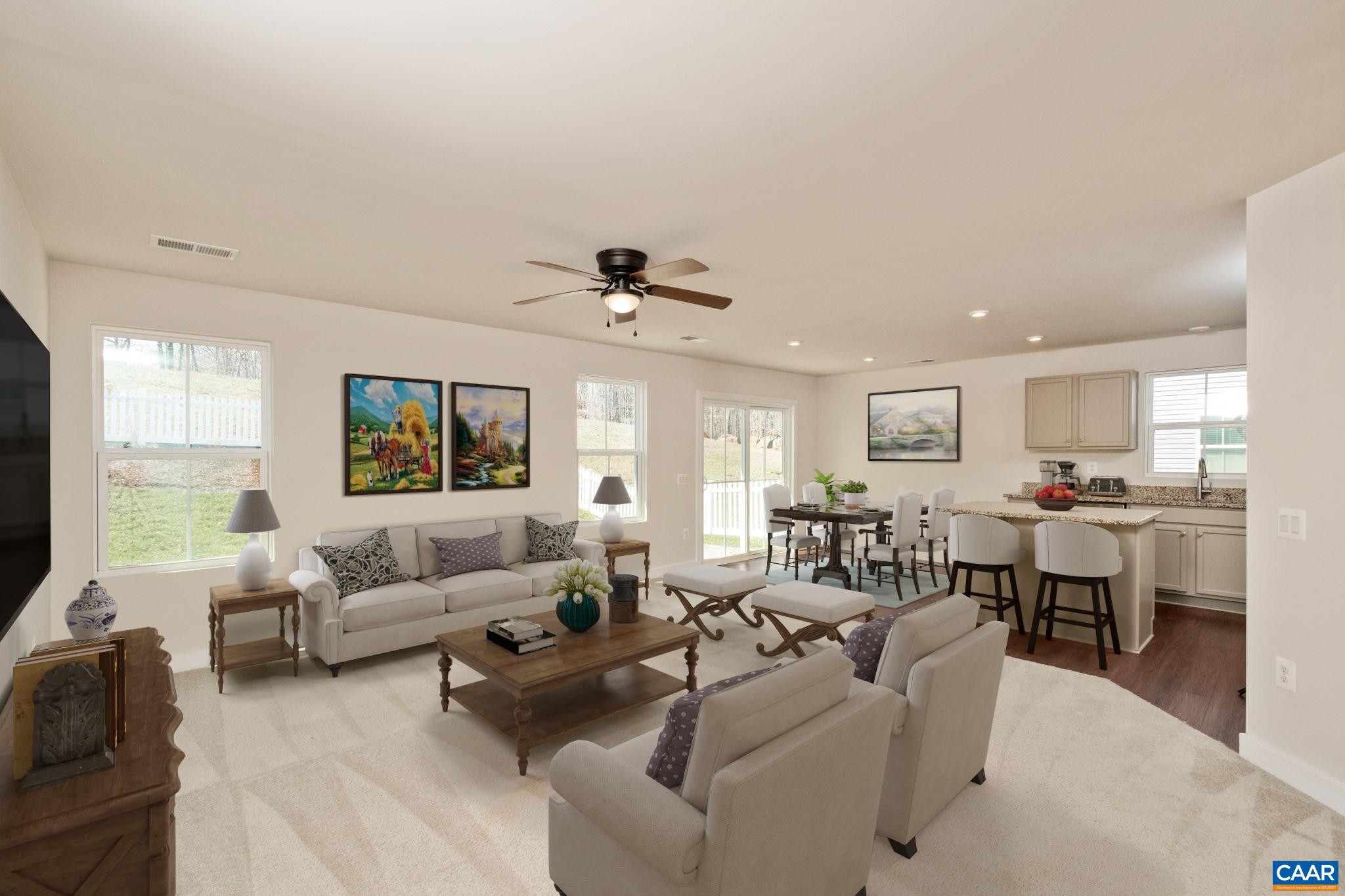 Enjoy one-level, maintenance-free living at it's finest! Enjoy your open floorplan with beautiful kitchen. The home chef will love the upgraded cabinets, granite counter tops and gas range. Your dining area and island provides plenty of seating to entertain. The primary suite offers a large bedroom with a lovely attached bath including a spacious shower and dual vanities plus a big walk-in closet. Two other bedrooms and a full bath along with a laundry room complete the interior. Walk outside to grill on your paver patio while enjoying your fenced in yard. Take a quick walk to the playground and clubhouse. The HOA takes care of the lawncare, so you can spend the summer at the community pool. All this with an easy commute to Charlottesville, UVA, and I-64. Come check out your new home!