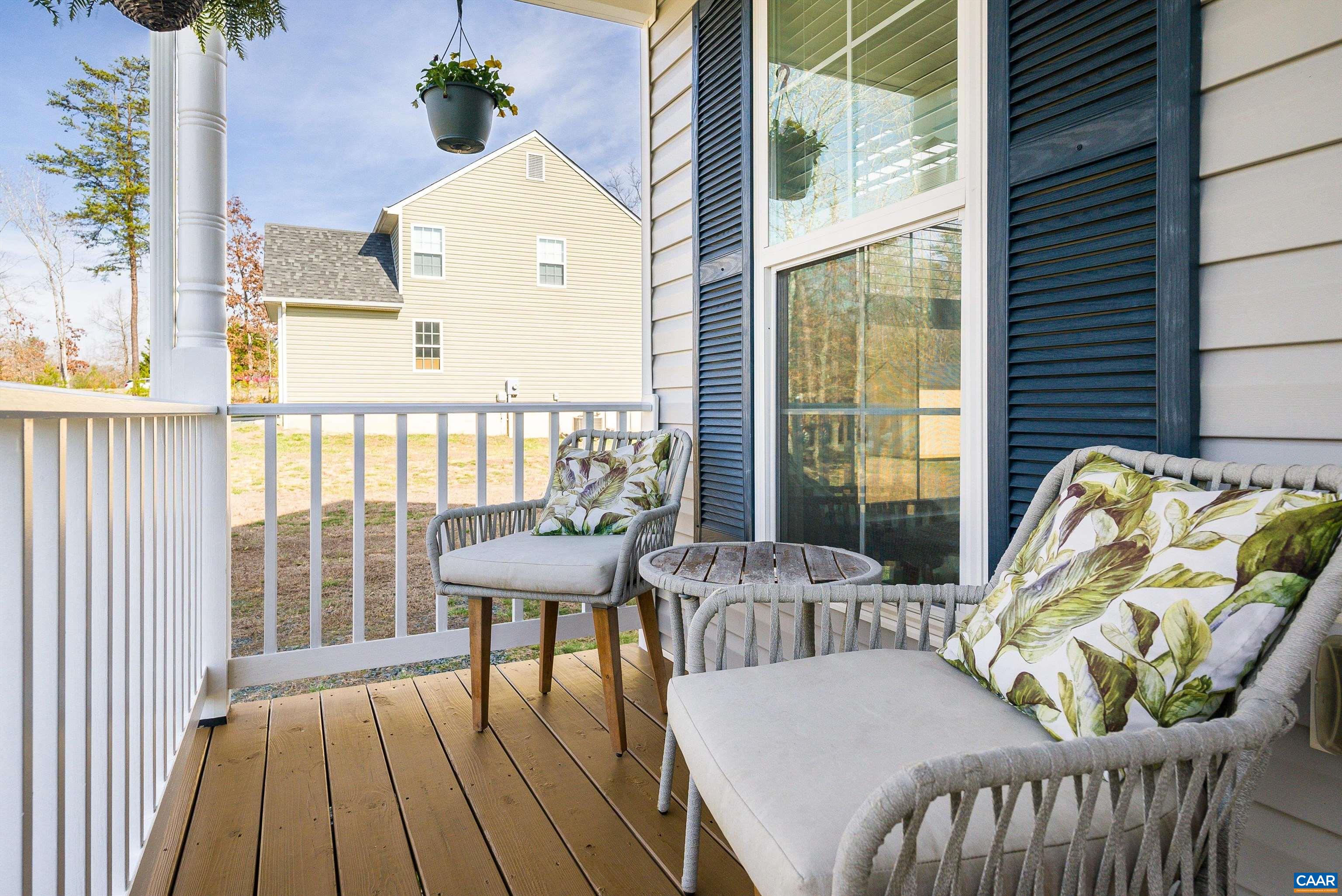 Welcome to Sycamore Landing — a walkable, private community just 25 minutes from Charlottesville, where neighbors stroll with dogs and strollers & geese drift by the community pond. This inviting home greets you with ornate curb appeal and oversized windows that bathe every room in natural light. Inside, a massive living room and flexible bonus room (currently a playroom but ideal as a formal dining room, home office, or studio) give you space and flexibility to live on your own terms. The eat-in kitchen features a large pantry, and breakfast bar. All bedrooms are conveniently located on the same level upstairs. The primary suite impresses with expansive vanity space, a walk-in closet, a linen closet, and a private commode room, while the two secondary bedrooms are each spacious with double closets. Attic storage and an outdoor shed keep everything organized, and the backyard is built for memory-making; deck, fire pit, play set, and space for gardening all included. High ceilings throughout and a porch made for lounging really elevate the feeling of an oasis in this home. Looking for more? Fence in the yard or add a garage for building equity in your new space. Neutral tones make a beautiful blank slate for you to make your own.