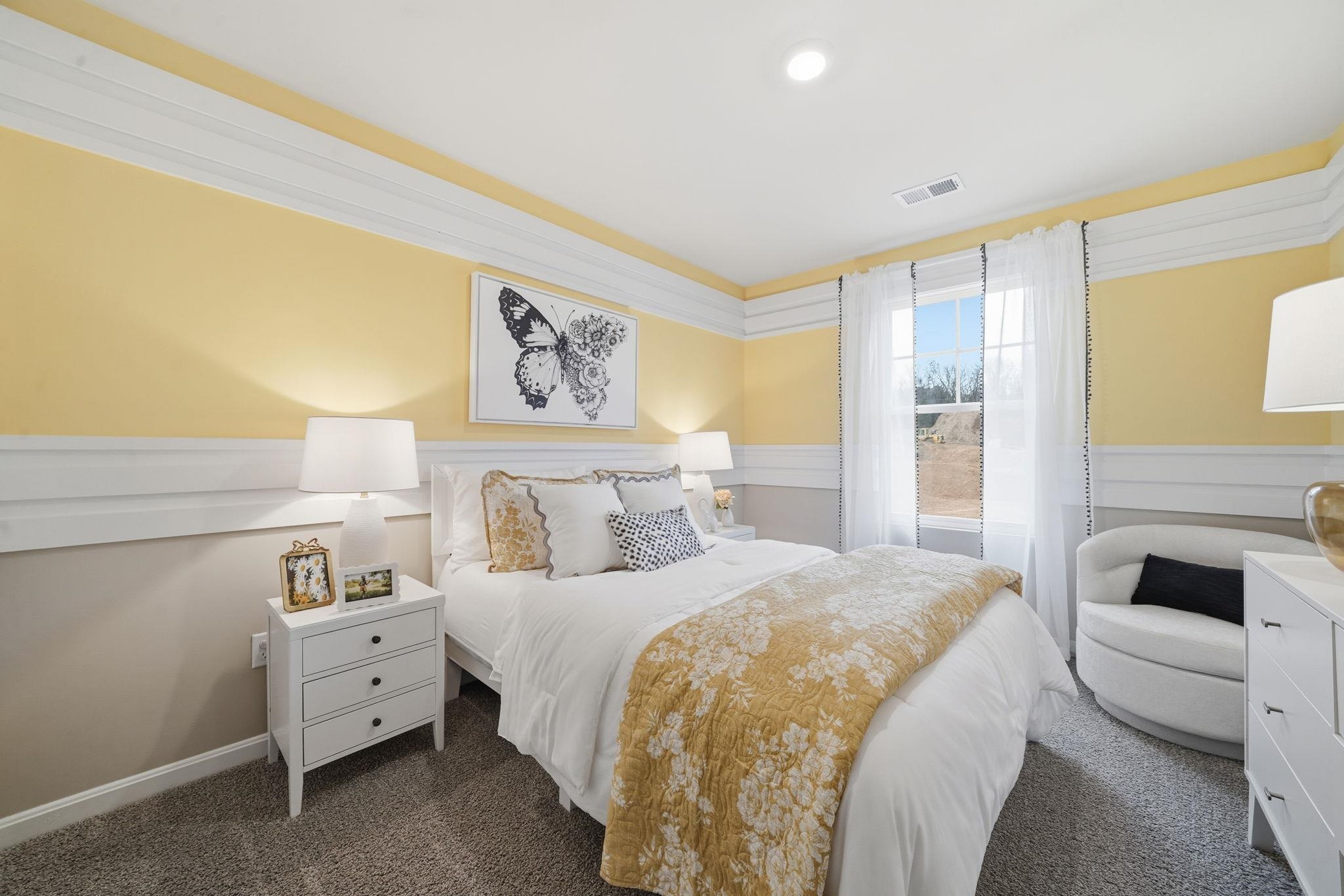 Bell Creek is a new construction community in Staunton, VA. Offering a variety of beautifully crafted homes and a gazebo, common spaces, and paved walkways, Bell Creek is built with modern living and community in mind. The Pine is a stunning open-concept home that perfectly blends comfort and functionality. This home features four spacious bedrooms, two and a half bathrooms, and a two-car garage, offering ample space for your family to grow and thrive. As you enter, you'll be greeted by a welcoming foyer with a convenient powder room and coat closet. The open floor plan allows for seamless flow between the living room, casual dining area, and kitchen, creating the ideal space for family gatherings and entertaining. The spacious kitchen is a highlight, with a large island offering plenty of seating, an impressive corner pantry, and stainless steel appliances. It overlooks the living and dining areas, and a sliding glass door provides easy access to the backyard. Upstairs, the owner's suite offers a private bath with a double bowl vanity and two oversized walk-in closets, creating a luxurious retreat. The three additional bedrooms are generously sized, providing ample privacy, and share access to the second full bathroom.