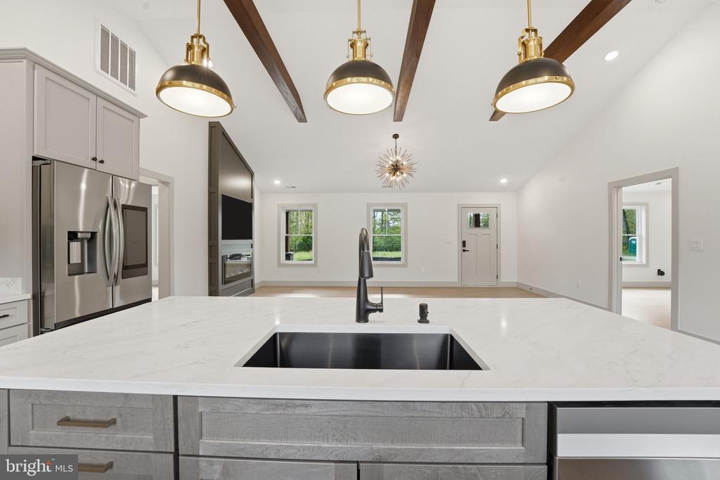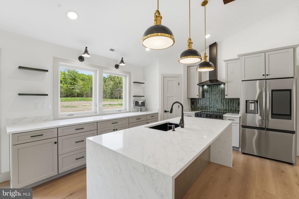 Fantastic Tech Laden New Construction! A wonderful interpretation of the modern farmhouse/craftsman home. Situated on 5.5+ private acres, this new build checks literally ever single box! Boasting 3 Bedrooms and 2 Baths, this home offers over 1,600 sq/ft of refined and thoughtfully designed sun drenched space. Note the premium metal board and batten siding, colored concrete porch and patio, vaulted ceilings with faux wood beams, huge windows, upgraded gourmet kitchen with quartz island and waterfall (with downlighting), smart Samsung appliance package, soft close cabinetry, beautifully finished baths, LVP throughout the entire home, functional mud room with built-ins, Fireplace and Flat Screen TV wall and so much more! Tech focused design ... Home offers built-in smart home control hub, smart appliances, smart thermostat, Alexa-enabled Echo Spot bathroom speakers with touchscreen displays, smart self-emptying robot vaccum, full Eufy security system with dual video doorbells, floodlight camera with tracking and smart lock with fingerprint recognition. Simply Not to Be Missed!