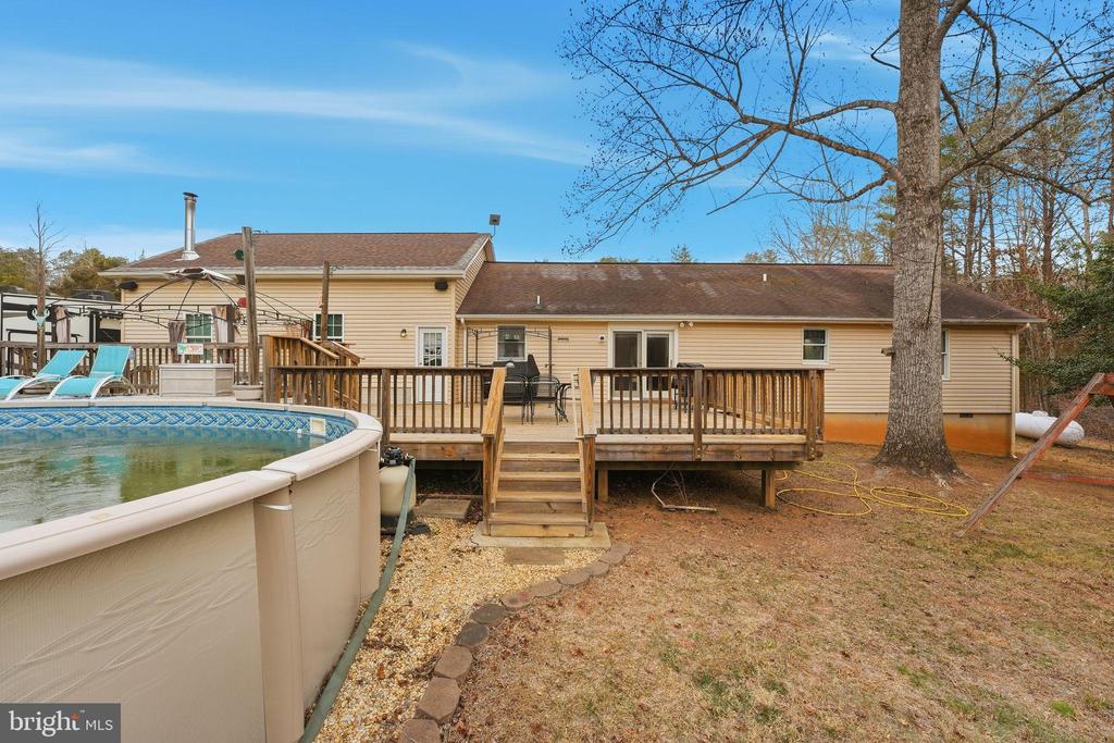 Welcome home to this charming 3-bedroom, 2-bath rambler offering comfort, space, and privacy. Step inside to a cozy living room that leads to a country-style kitchen with plenty of character and functionality. Enjoy outdoor living on the extra-large deck, complete with an above-ground pool””perfect for relaxing, entertaining, or summer gatherings. The home also features an oversized 30 x 30 two bay garage, providing ample room for vehicles and storage. Additional potential awaits upstairs with stair access to a partially finished attic, ready for flooring to create extra living space, a home office, or bonus room. Outside, you'll find a detached garage/barn with a lean-to, ideal for extra storage, hobbies, or equipment. The property backs up to 132+ acres of wooded land owned by the City of Fredericksburg, offering exceptional privacy and a peaceful, secluded backdrop right in your own backyard.