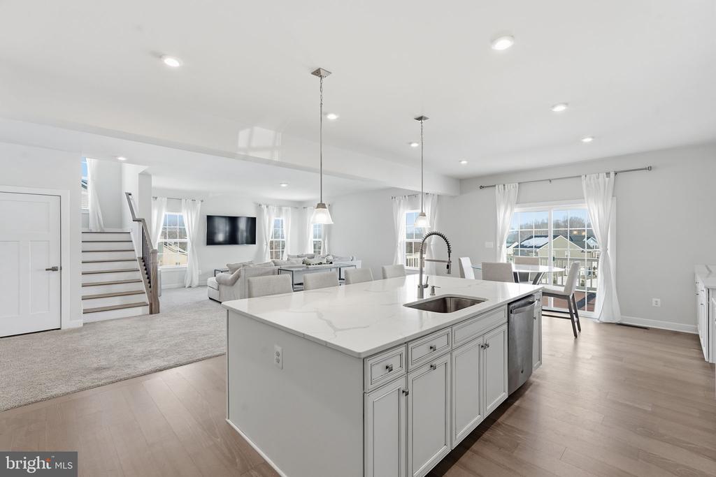 Welcome to this stunning 4-year-young single-family home offering modern design, thoughtful layout, and exceptional space across three beautifully finished levels, all situated on over half an acre. The bright and open main level is designed for both everyday living and entertaining. At the heart of the home is a gourmet kitchen featuring quartz countertops, a large center island with seating for four, double ovens, and abundant cabinetry, a chef's dream! Just off the kitchen, step out onto the deck, perfect for morning coffee, outdoor dining and entertaining. The seamless flow into the dining and living areas creates an inviting space filled with natural light. A main-level bedroom adds flexibility for guests, multi-generational living, or a private home office. The oversized mudroom provides incredible storage and organization. Upstairs, you'll find four spacious bedrooms, including a luxurious primary suite with a private bath. A versatile loft overlooking the two-story foyer, offers the perfect space for a second living area, study zone, or playroom. The fully finished basement expands your living space even further with an additional bedroom, full bath, large recreation room, dedicated media room, and a large storage area. Th