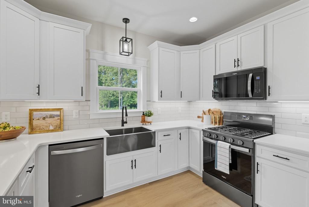 Welcome to 195 Promise Lane in Noah's Landing, a premier corner-lot property w/seasonal lake views & private-side lake access in one of Lake Anna's most desirable communities. Built by the highly respected J.D. Goodman Builder Inc., this BRAND NEW Craftsman home showcases the exceptional craftsmanship & elevated finishes buyers actively seek and rarely find. Double front doors lead into the vaulted family room, w/custom shiplap fireplace surround & porch access. The gourmet kitchen delivers w/quartz countertops, farmhouse sink, tile backsplash, under-cabinet lighting, soft-close cabinetry, & an expansive peninsula. The layout is intentionally designed for flexibility & long-term value. A main-level primary suite provides spa-inspired luxury w/dual vanities, private toilet room, an expansive walk-in tiled shower w/niche & rainfall head, & generous WIC w/custom shelving. Upstairs, a second private primary suite is perfect for multi-generational living, extended guests, or hosting weekends at the lake. Two additional bedrooms downstairs share a hall bath & upstairs, a versatile 5th bedroom or flex space hosts a private bath. Additional upgrades: LVP flooring, conditioned crawl space, 42" sidewalk, finished 2-car garage, laundry/mudro