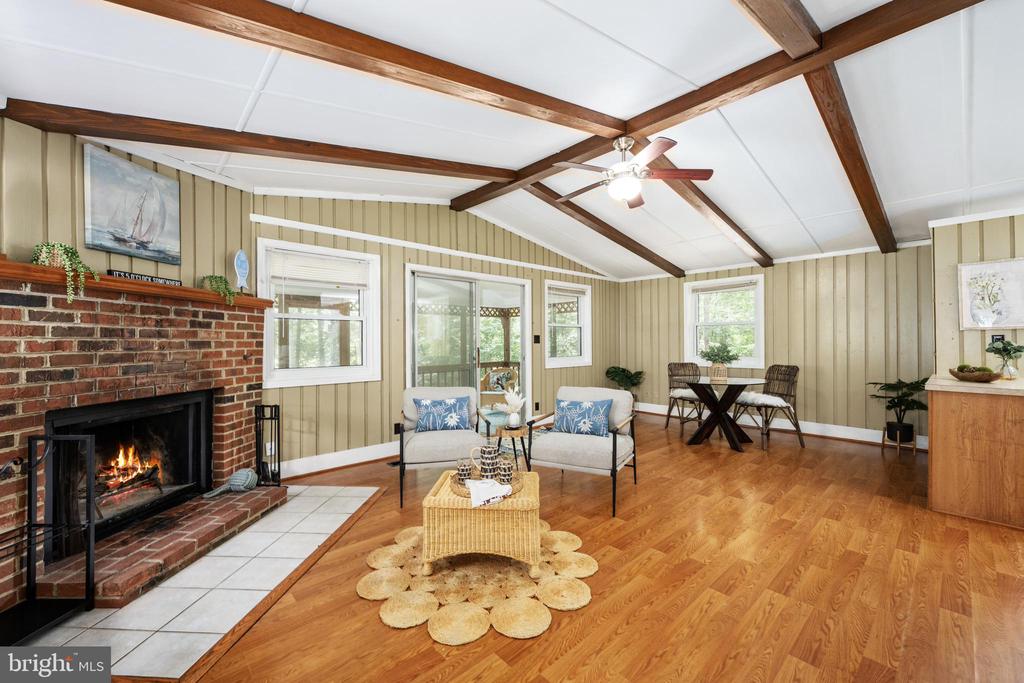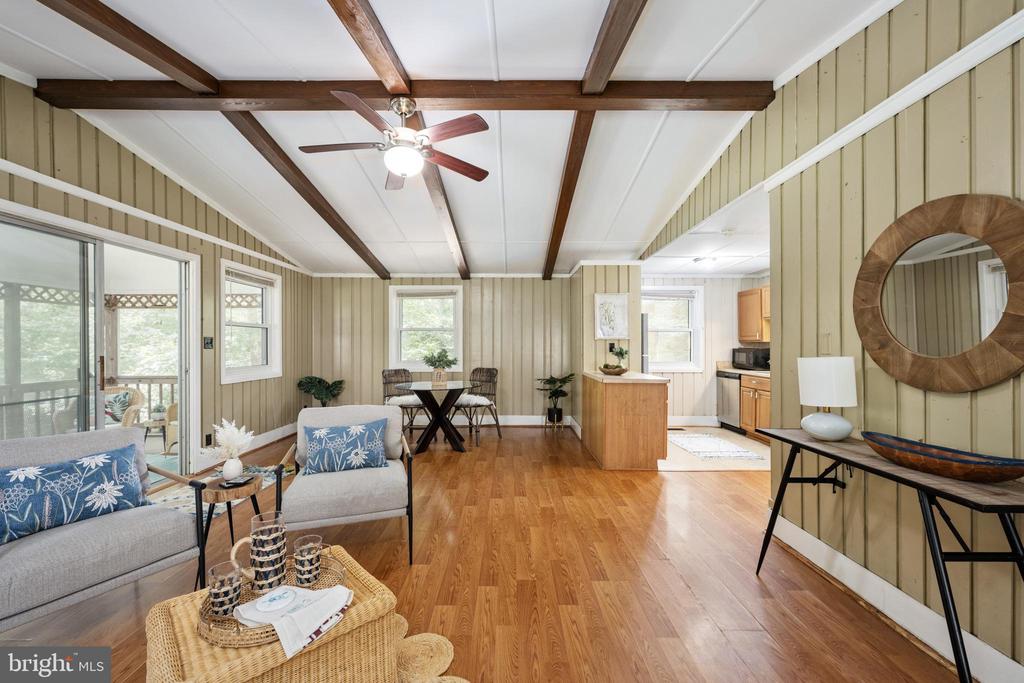 Welcome to this cute Cottage located in the fabulous community of Lake of the Woods! This adorable bungalow is an ideal choice for first-time homebuyers, those seeking a cozy second home, or individuals looking to downsize without compromising on lifestyle. This charming cottage offers a unique blend of comfort, character, and access to incredible amenities that truly define community living. The exterior boasts a delightful front porch, perfect for sipping your morning coffee or enjoying a peaceful evening. The expansive screened-in porch at the back provides additional outdoor living space, ideal for entertaining friends and family or simply relaxing while taking in the beautiful surroundings. Step inside to discover an open floor plan that exudes warmth and charm. The inviting living area features stunning beam ceilings that create an airy atmosphere and a cozy brick fireplace, perfect for those chilly evenings. The layout flows seamlessly into the cute little kitchen, which is efficiently designed and equipped for all your culinary adventures. This bungalow offers three comfortable bedrooms and a single bathroom is conveniently located and thoughtfully designed, ensuring functionality and comfort for everyone. With its cozy ro