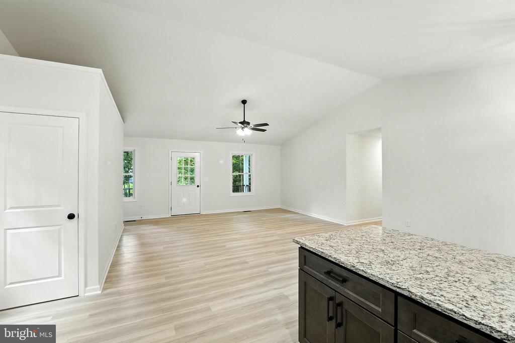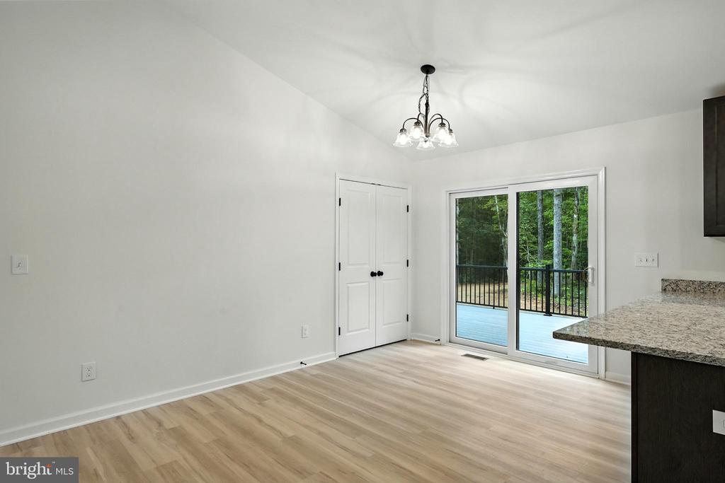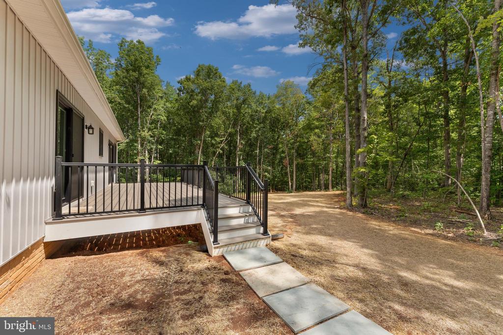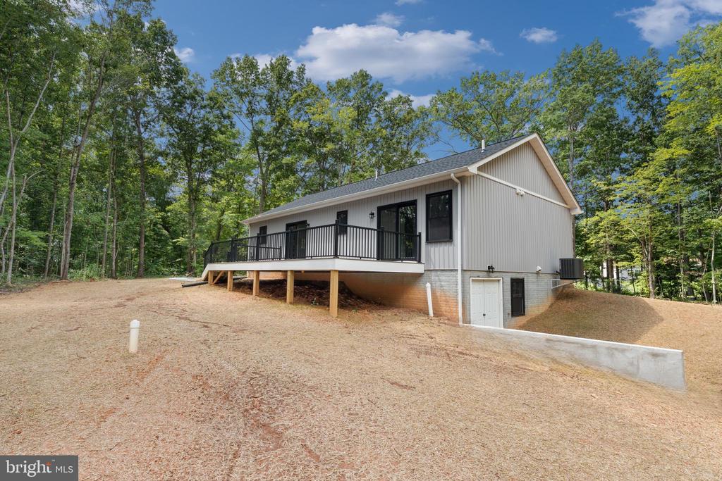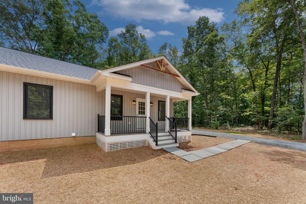 Spectacular Custom Built 3 Bedroom, 2 Bath Rambler on 5.36 acres!! Eye catching vertical Board & batten siding, black frame windows, and so much more! Relax on the covered front porch and invite your friends to grill out on the Trex deck that spans the rear of the home. Kitchen features a breakfast bar and pantry, and the Breakfast Room offers plenty of table space! Spacious Primary Suite offers walk-in closet, private bath with double vanity. Rear deck can be accessed via both the Breakfast area and Primary Suite! Full, unfinished walk-out basement with rough-in for future bathroom. It's a perfect canvas for your future rec room vision, or plenty of storage space!! Builder takes pride in using top quality materials and attention to details from start to finish! GAF lifetime architectural shingles, double-hung low-E black vinyl tilt-in windows, premium grade vertical board & batten siding, Trane high efficiency heat pump, Trex decking.