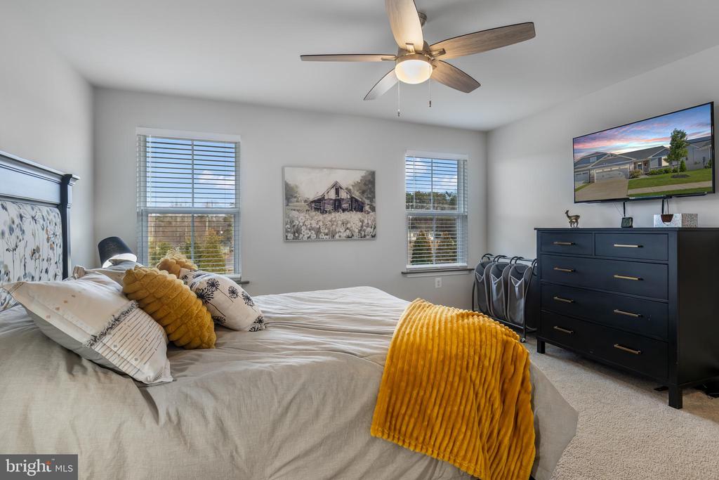 Discover the charm of this beautifully designed villa in the 55+ community of Twin Lakes, built in 2022. This inviting home features three spacious bedrooms and two full bathrooms, perfect for comfortable living. The open layout is enhanced by ceiling fans and stylish window treatments, creating a warm and welcoming atmosphere. Enjoy modern conveniences with a suite of high-quality appliances, including the washer, dryer, and refrigerator. The full basement offers additional space for recreation or relaxation, and you can enjoy your views and backyard from the covered deck or Trex patio below. The property is centrally located within minutes of four distinguished golf courses. As an option, a living room couch and chairs, as well as island bar stools, are available for purchase. This villa is a perfect blend of modern living and cozy charm, ready to welcome you home.