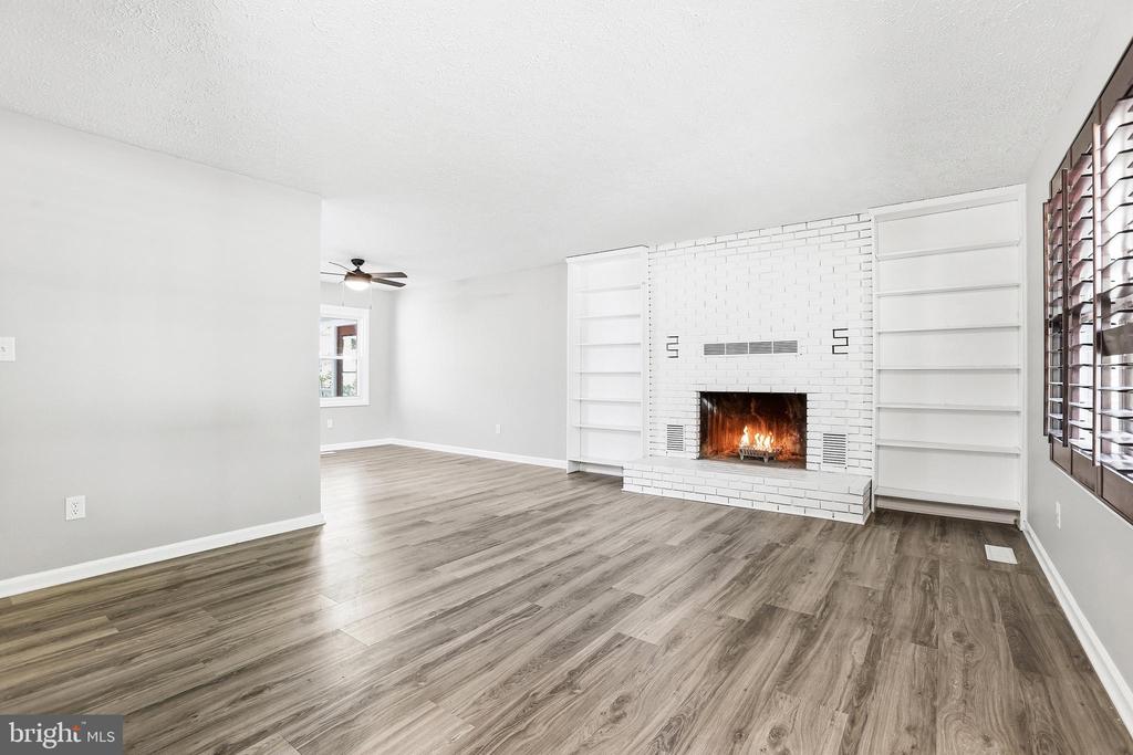 107 Sunset Ct, Locust Grove, is a beautifully renovated ranch-style home in the desirable Lake of the Woods community, perfectly situated within walking distance of the beach. This move-in-ready gem offers 1,248 square feet of living space on a single level, featuring 3 spacious bedrooms and 2 fully updated bathrooms. The interior has been completely transformed with a fresh, neutral color palette and brand-new, grey-toned luxury vinyl plank flooring that flows throughout the home. The heart of the home is a spacious living area centered around a classic white brick wood-burning fireplace framed by custom built-in shelving, providing a perfect blend of style and comfort. The updated Scandanavian inspired kitchen is a chef's delight, boasting crisp white cabinetry, modern finishes, and brand-new stainless steel appliances, including a washer and dryer for ultimate convenience. Each bathroom has been thoughtfully refreshed with contemporary vanities, sleek hardware, and modern lighting to complete the home's polished look. Outdoor living is just as impressive, featuring a charming stone-lined walkway, a welcoming front porch, and a large private covered back porch that overlooks a peaceful, wooded backyard. The property also include