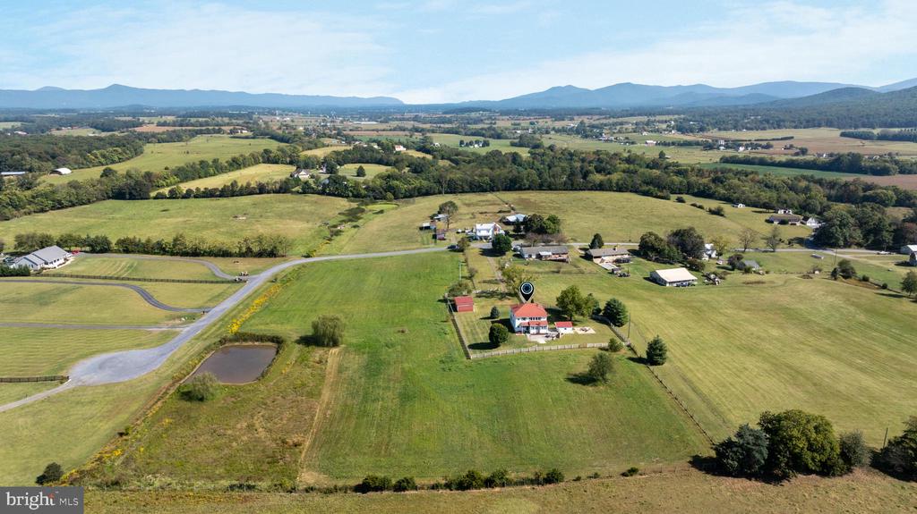 Modernized farmhouse with astounishing mountain views on 4.7 acers of open land. This stunning 4 bd 3 ba farmhouse beautifully blends historic charm with modern upgrades, all while being situated on over 4.7 acers. As you walk into the farmhouse you're greeted in the grand center foyer, which extends the length of the home and showcases a sweeping staircase. The sizeable rooms throughout are designed for luxurious living, including a gourmet kitchen that has a stunning scenic view, with a walk in pantry, a formal dining room, a living room, office and cozy family room. The primary suite offers a private bath and spacious walk in closet, while the additional bedrooms are generously sized, accompanied with natural lighting filled bathroom. Stepping outside, youre met with a serene pond and breath-takingly expansive views of the Blue Ridge Mountains. Convienently located between the George Washington National Forest and the Shenandoah National Park. A large covered front porch, and a spacious rear patio that is accompanied with a charming outdoor fireplace that provides the perfect entertaining space, or quiet evenings at home. Completing the property is a three-bay spacious detatched garage, ideal for vehicles, equipment, or the per