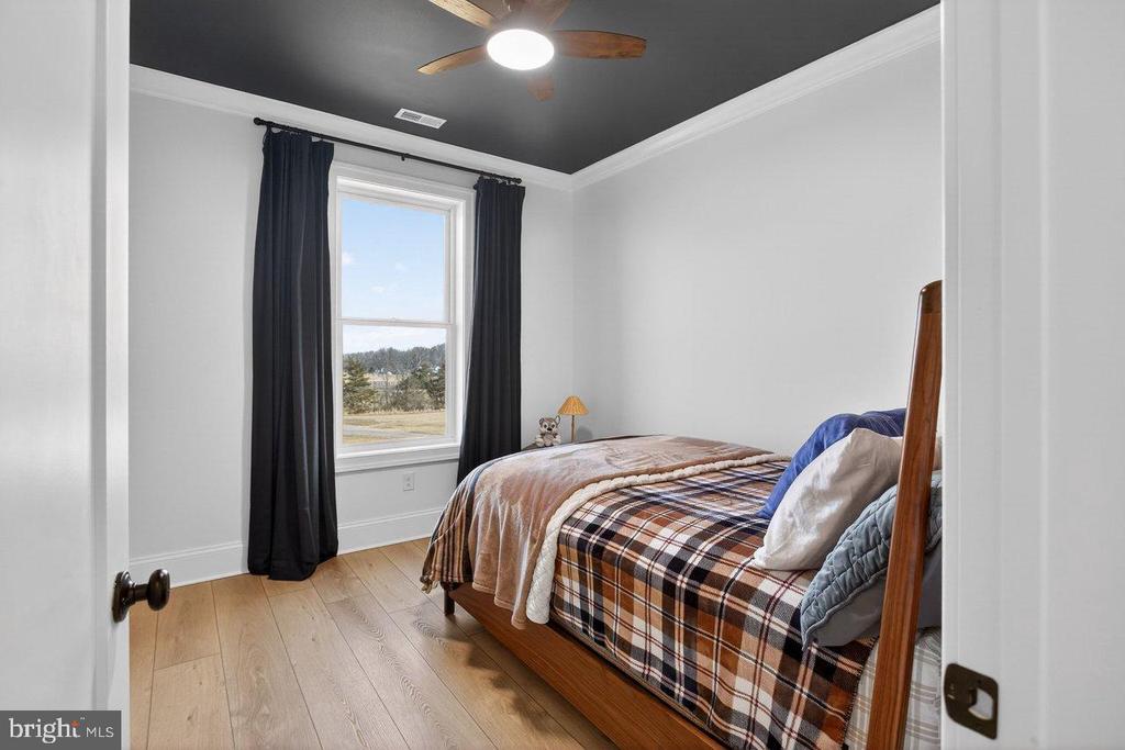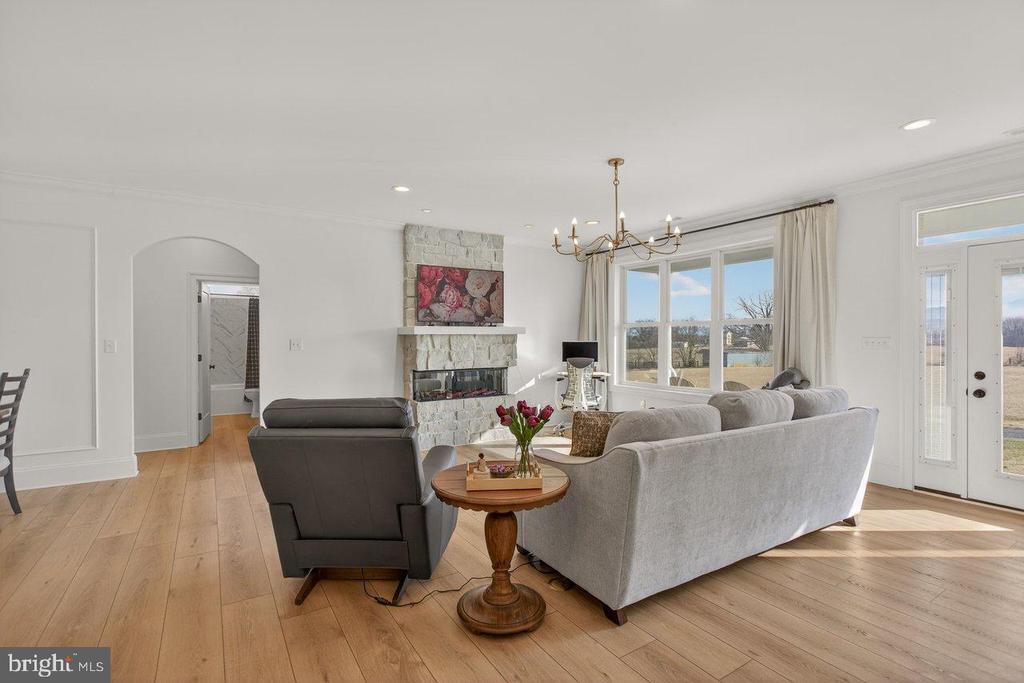 PANORAMIC BLUE RIDGE VIEWS - Experience refined country living in this beautifully crafted 2025 modern farmhouse set on 8+ acres of pasture in Virginia's breathtaking Shenandoah Valley. Designed for effortless single-level living , this exceptional home blends timeless farmhouse charm with high-performance construction and contemporary luxury. Step inside to a bright, open-concept layout filled with natural light and seamless indoor-outdoor flow. Wide COREtec cork plank flooring runs throughout, delivering warmth, comfort, sound insulation and waterproof durability. The inviting living area is anchored by a stone-faced electric fireplace, creating a warm yet sophisticated focal point. The chef's kitchen is a true showpiece featuring custom KraftMaid cabinetry, premium Cafe appliances, expansive Cambria quartz countertops, a striking Zellige tile backsplash, and oversized quartz island ideal for gathering and entertaining, and a spacious walk-in pantry offering abundant storage and organization. Bedrooms include a serene primary suite with spa-inspired bath. An additional 1.5 bathrooms provide comfort and convenience for family and guests. Enjoy both covered front and rear verandas- perfect for peaceful mornings, shaded afternoons,