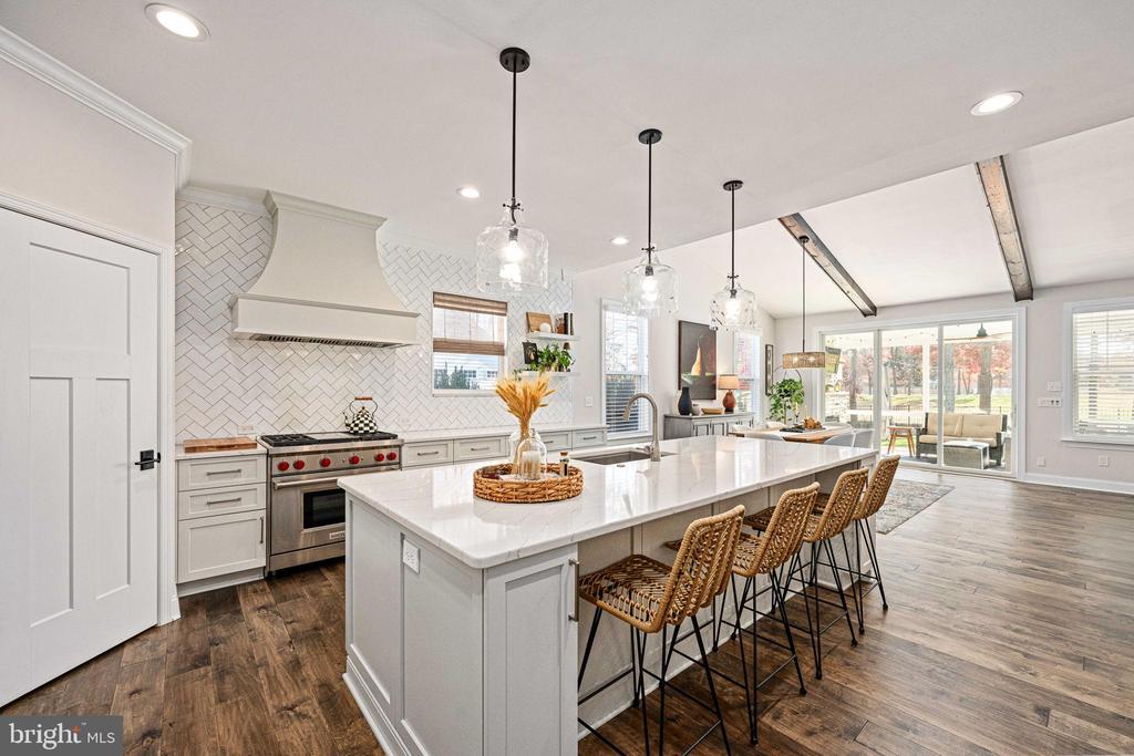 Experience modern elegance and elevated living in this custom Craftsman-style home, perfectly positioned within the prestigious Fawn Lake community. Built in 2019 and thoughtfully enhanced in 2023, this residence showcases sophisticated upgrades and luxurious finishes throughout, creating a warm and welcoming retreat designed for both everyday comfort and exceptional entertaining. Inside, an expansive open floor plan is adorned with engineered hardwood floors, exposed beams, and abundant natural light. The gourmet kitchen stands as the heart of the home, featuring premium Wolf appliances, a Sub-Zero refrigerator, upgraded quartz countertops, a spacious island, a second oven, and a sunlit breakfast area””ideal for the culinary enthusiast. The main level offers exceptional convenience with the primary suite plus two additional bedrooms connected by a shared bathroom. The primary suite provides a serene escape with a generous walk-in closet and a spa-inspired bath complete with a soaking tub and separate shower. From the primary bedroom, enjoy direct access to the patio, where peaceful views of the fenced backyard, golf course, and heated saltwater pool create the perfect backdrop for morning coffee or evening relaxation. The living