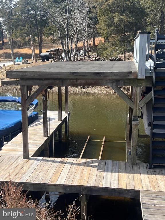 Wonderful opportunity to own this shared waterfront home with a covered boat slip and lift. Boat slip #7 conveys with the property. 1264 sqft of finished space with 3 bedrooms, 2 baths, living/dining, a kitchen, and a loft. An additional 784sqft of unfinished space in the walkout basement is ready to be finished to add an additional bath and living space. A 2-tier deck over a gravel patio provides ample outdoor space to enjoy cookouts or views of the lake. Located mid-lake, there is easy access by boat to the lake's many restaurants: The Cove, Tims, and the Tap House. It's also a short drive to the off-lake amenities, Food Lion, DG Fresh, Local Wineries, and Breweries. The home is being sold as-is and provides an excellent opportunity to develop an amazing waterfront retreat at an affordable price
