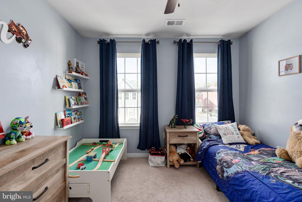 Welcome home to this beautifully maintained three-level townhome, built in 2019 and thoughtfully designed with an open, light-filled floorplan in the sought-after Wheatland Station community. The main level features a spacious eat-in kitchen with abundant cabinetry, granite countertops, a gas stove, and a large center island ideal for everyday living and entertaining. The family room includes a fireplace and generous natural light, creating a warm and inviting gathering space. Upstairs, the primary suite offers a tray ceiling overlooking the tree-lined backyard, its own fireplace, and a newly installed custom closet system designed for enhanced organization and storage. The private primary bath features dual vanities, an oversized shower, and modern finishes. Two additional bedrooms, a full hall bathroom, and a conveniently located laundry area complete the upper level. The fully finished lower level provides flexible living space and walks out to the backyard, offering additional room for recreation, entertaining, or relaxation. Enjoy outdoor living on the newly installed paver patio, perfect for gatherings or quiet evenings outdoors. Energy efficiency is an added bonus, with solar panels that will be paid in full at closing, pro