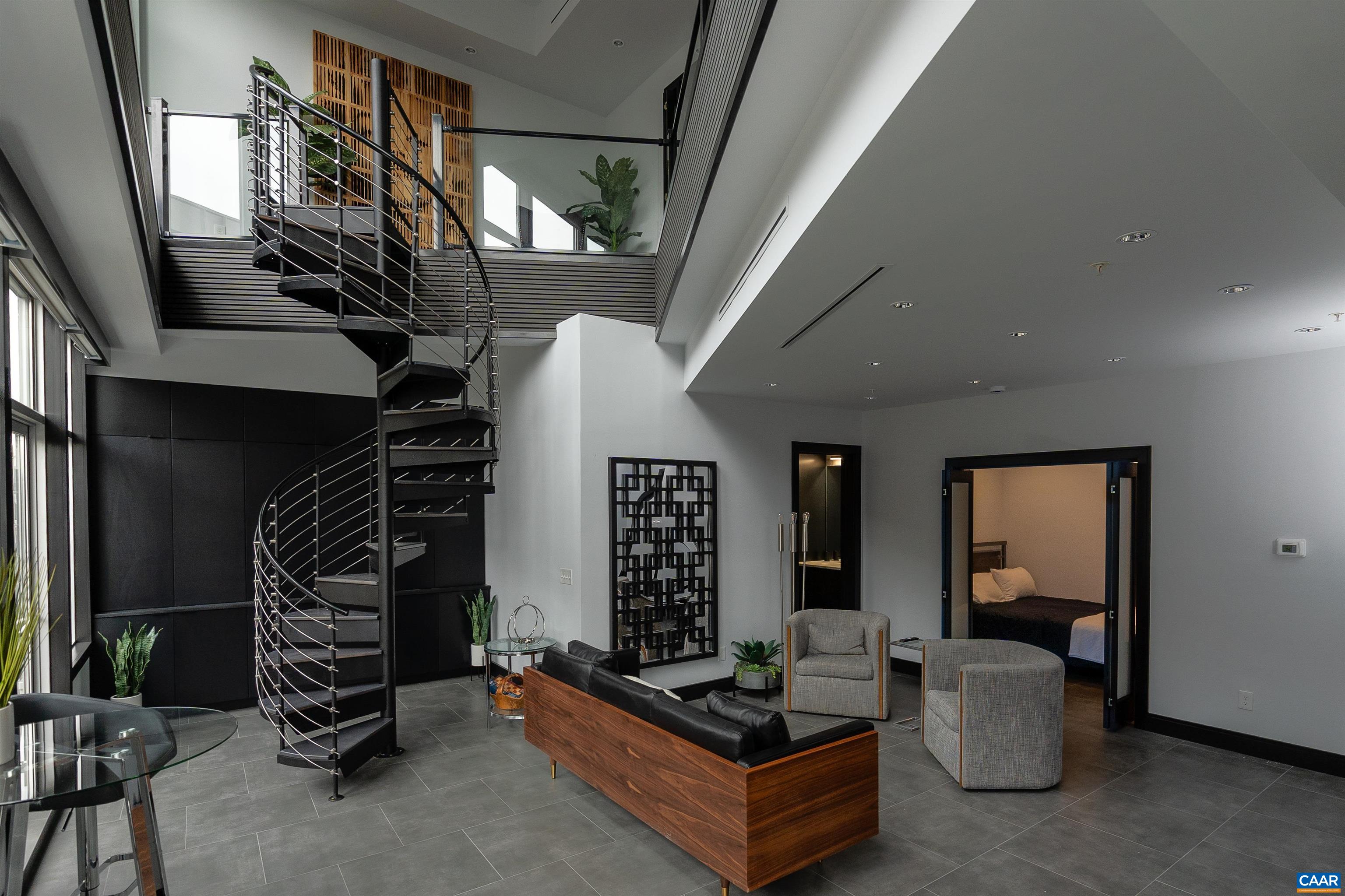 Entering Unit 600 you are welcomed by a soaring 22-foot wall of windows spanning two floors, with a picturesque scene of The Historic Downtown Mall nestled in the mountains of Central Virginia. The open...